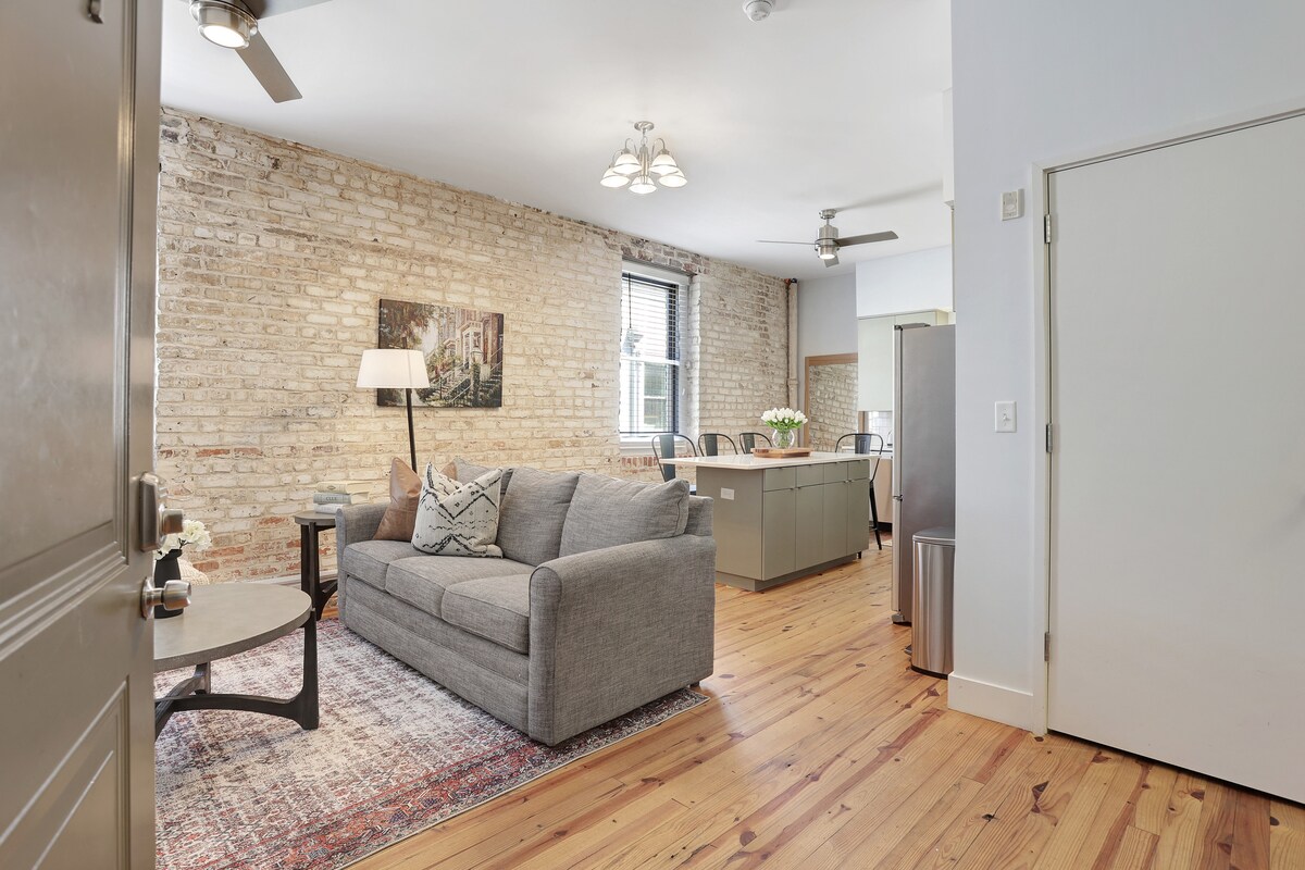 Imagine it: unbeatable downtown location, exposed brick walls (original to the building from the early 1800's!), luxurious touches and, did we mention the location? This beauty has it all! In the heart of downtown, seconds from popular restaurants, shopping and entertainment. Minutes from the famous City Market and bustling River Street. Professionally curated to invite and relax; enjoy our luxury linens, local artwork, well-appointed kitchen and special details designed to delight.