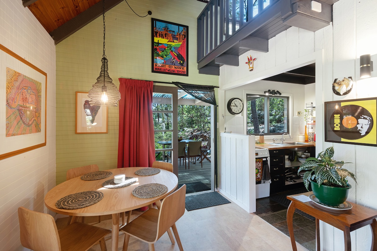 Casa rural d'estil retro fresc, molt espaiosa i molt relaxada. Està ple de tresors de viatge barrejats amb coses retro modernes i funcionals. A poca distància en cotxe de totes les fabuloses platges, pobles i parcs nacionals de la badia de Jervis. La casa rural es troba enmig d'espatlles imponents i envoltada per un jardí tropical i comestible, amb èmfasi en els principis de permacultura, incloent-hi granges de cuc i estanys de ranes. S'han utilitzat articles reciclats i reutilitzats per crear art de jardí i per fer un ambient Byron-meets-Bali.