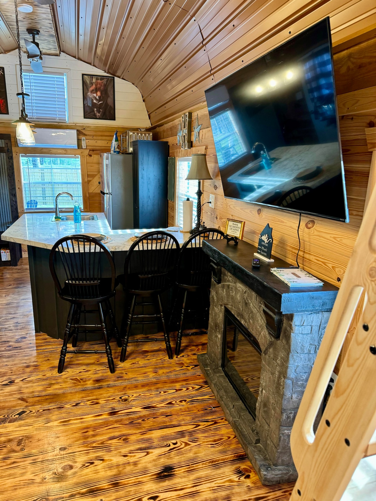 Diverteix-te amb tota la família (fins i tot amb les mascotes) en aquest allotjament d'estil bohemi als afores. Estem situats a poca distància en cotxe de diversos serveis, com ara botigues, restaurants, parcs i molt més. Tant si t'aconsegueixes a la sala d'estar al voltant de la llar de foc com si gaudeixes de la brisa al porxo posterior mentre mires els petits jugar al columpio o els teus animals de companyia jugar al pati tancat, esperem que et sentis com a casa. Fa poc hem afegit una sala de cinema i una sala de jocs!