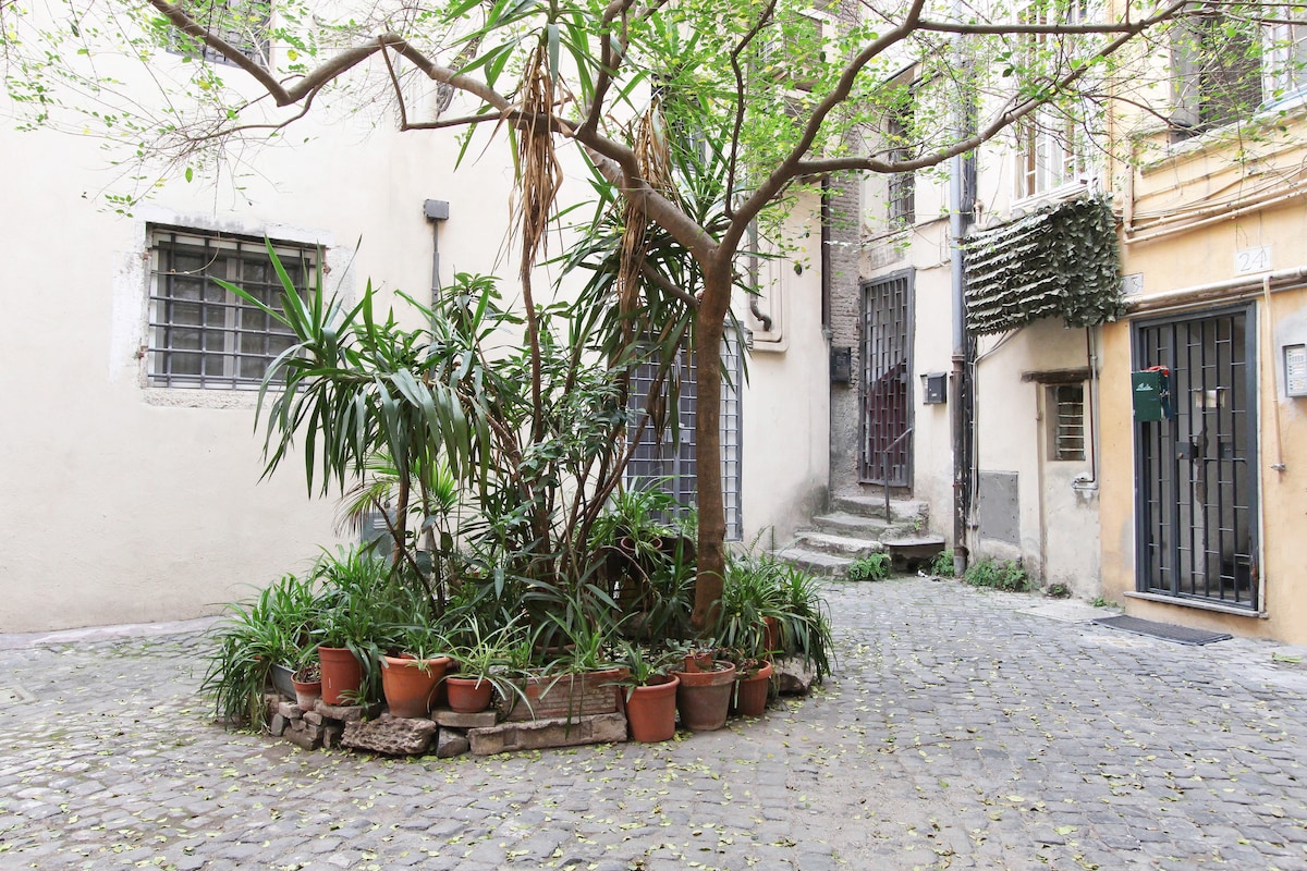 Casa unifamiliar acollidora d'un dormitori, amb vistes a un pati interior assolellat i tranquil. The Secret Courtyard es troba en un dels pintorescos carrers laterals empedrats del cor de Trastevere. El seu disseny particular, els sostres alts, els mobles fets a mà, els petits tocs, fan que sigui un espai únic per a la delícia, el descans i la comoditat.