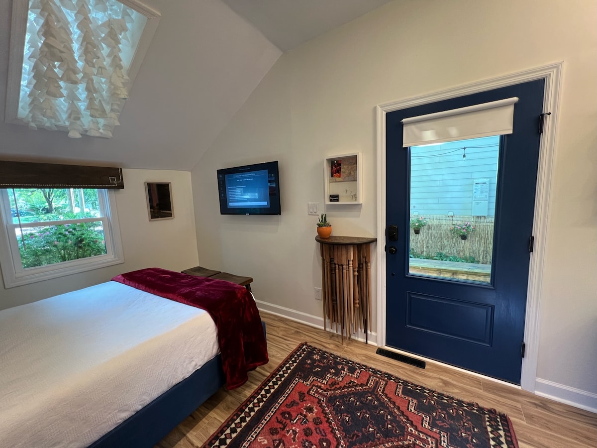 Aquest espai, recentment renovat, està dissenyat per a viatgers als quals no els importa disposar d’un espai més petit amb un disseny net i minimalista, A MÉS d’una porta de garatge aïllada que pots obrir els dies assolellats! Aparca al costat de l’entrada, connecta el carregador del vehicle elèctric i fes una passejada curta per arribar a restaurants, museus i sales de concerts. A més, si viatges amb un grup més gran, la casa adjunta ofereix espai per a un màxim de sis hostes. Vas a Raleigh a la recerca d’un allotjament per comprar? La vostra estada podria ser GRATUÏTA. Poseu-vos en contacte amb nosaltres per obtenir més informació!