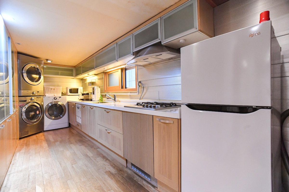 Casa de disseny premium amb jardí i terrassa amb barbacoa situada al centre de la ciutat de Hongik University Station Aquesta casa especial, presentada a CASA Living, MARU, SBS Morning Wide, és un espai dissenyat pels dissenyadors Simone Carena i Marco Burano de l'estudi de disseny italià Elastico, que van reinterpretar l'estructura i la cultura del tradicional hanok coreà d'una manera moderna. Gaudeix d'un espai de benestar al cor de la ciutat on pots sentir la natura de les quatre estacions al centre de Seül, un jardí envoltat d'heura. A la luxosa sala d'estar amb llar de foc, pots veure pel·lícules amb un projector de feix. Els dormitoris estan equipats amb roba de llit de plomissol d'oca de primera qualitat (95 % o més) a l'altura d'un hotel de 5 estrelles. Un allotjament de primera qualitat situat en una zona residencial tranquil·la a prop de les sensacionals cafeteries, restaurants i galeries de Hongdae, però una mica lluny de l'enrenou. Superhost durant 12 anys seguits, amb la màxima satisfacció en neteja, gestió i servei Servei de recollida a l'aeroport gratuït per als hostes que reservin 4 nits o més Experiència gratuïta d'un recorregut privat per Seül per a hostes amb una reserva de 5 nits o més