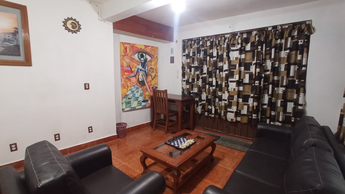 Es una casa ubicada sobre la avenida principal a escasos 700 metros del zócalo, a tan solo 4 minutos en tu vehículo o 10 minutos caminando, cuenta con sala, tv, comedor, cafetera (no incluye café ), horno de microondas, frigo así como una mini cocina con parrilla eléctrica y fregadero para lavar los trastes, así como estacionamiento independiente gratuito para vehículo chico.