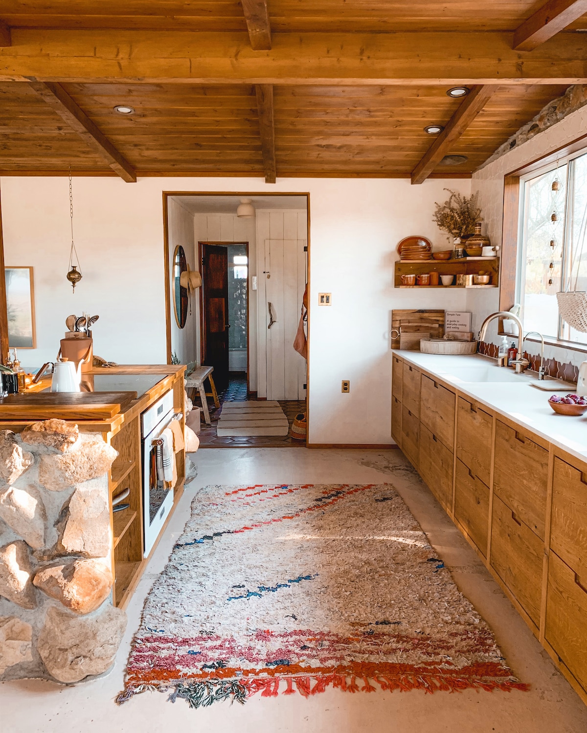 Situada a la part superior de la Mesa, aquesta casa de nova construcció en 10 hectàrees de terreny ofereix vistes al parc nacional durant el dia i destaca la gran Via Làctia de nit. Submergeix-te en la banyera doble amb peu de garra i contempla un mar de Joshua Trees o gaudeix del cel del desert al porxo del darrere mentre les estrelles fugaces s'eleven sobre el cap. Si busques una escapada de les masses, però encara estàs a prop de tot el "divertit" Joshua Tree i Yucca Valley, no busquis més enllà de Ladera House.