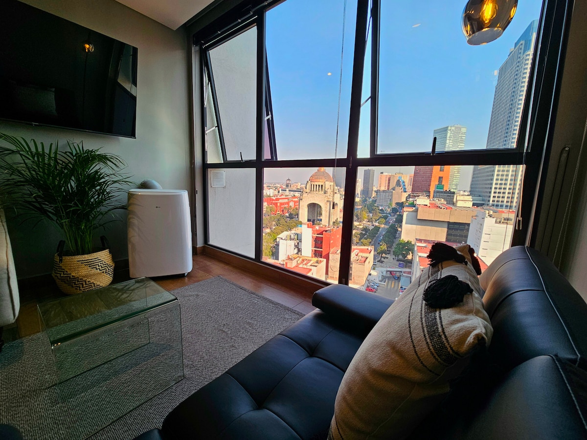 Desperta't al cor de la ciutat amb unes vistes impressionants. Aquest loft modern i elegant es troba a sobre de Reforma, just davant del Monument a la Revolució. Ideal per a parelles, viatgers de negocis o nòmades digitals, l'espai combina comoditat, disseny i una ubicació immillorable. Gaudeix d'equipaments i serveis com ara piscina, gimnàs, vigilància les 24 hores i accés ràpid als principals llocs turístics i restaurants de Ciutat de Mèxic.