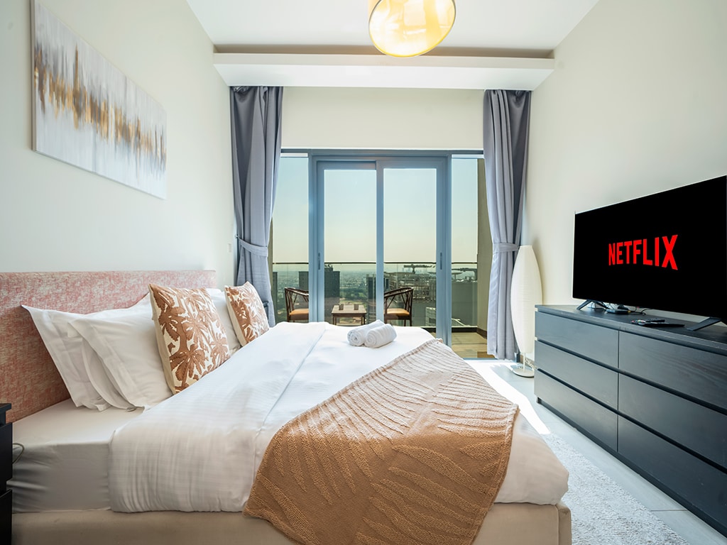 Apartament estudi cèntric, modern i lluminós, totalment moblat, amb balcó, al port esportiu de Dubai, molt a prop de l'estació de tramvia i metro de Dubai, a poca distància a peu del Marina Walk, Marina Mall i la platja JBR. L'apartament és a prop de tots els centres comercials principals, botigues, bars i restaurants, entreteniments per a nens i adults amb accés gratuït a piscina compartida, gimnàs, barbacoa exterior. A poca distància a peu de tres supermercats 24 hores com a mínim. Hora d'arribada: 15:00 en endavant
