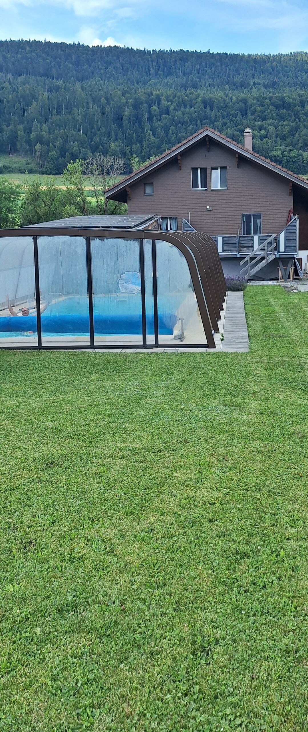 B&B de nova construcció en una granja (edifici independent) al Jura bernès (1100MüM). Tranquil·litat i relaxació amb vistes precioses als Alps. Els preus són per a les pernoctacions amb esmorzar. Per aquest motiu, la bonica sala d'estar amb una petita cuina es pot utilitzar de forma gratuïta. A més, el B&B disposa d'una terrassa gran amb barbacoa. Els nens menors de 3 anys s'allotgen gratuïtament a l'habitació dels pares. Ofertes addicionals o condicions especials a petició.