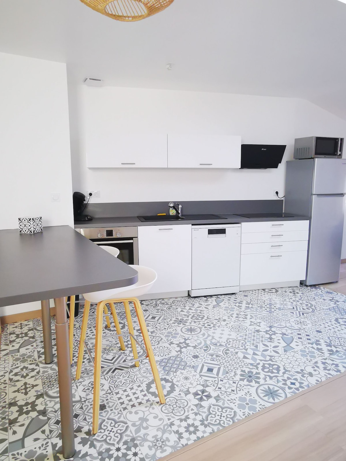 Acollidora casa rural de 3* (3 orelles) de 40 m2, propera a MAIF, MSA, DARVA, Altima Assurances i Zona Com. de Chauray. 20mn Estació i Centre Vi Allotjament situat al primer pis d'un edifici anexo damunt dels garatges d'una finca tancada, amb accés per unes escales de pedra a l'aire lliure que donen a una terrassa de 16 m2. Calefacció central, WiFi gratuïta, televisió de pantalla plana. Cuina oberta totalment equipada (forn, LV, nevera, congelador, microones, cafetera Senseo). Llit 160 + BB equipament Dutxa amb gran dutxa italiana.
