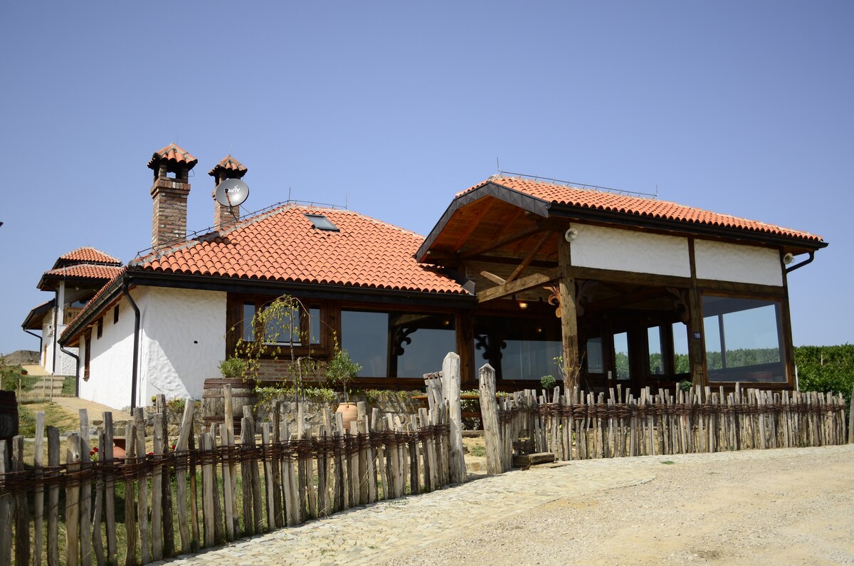 Arquitectura tradicional serbia barrejada amb elements moderns que té una vista de tota la zona i els paisatges. Una vinoteca aïllada entre vinyes