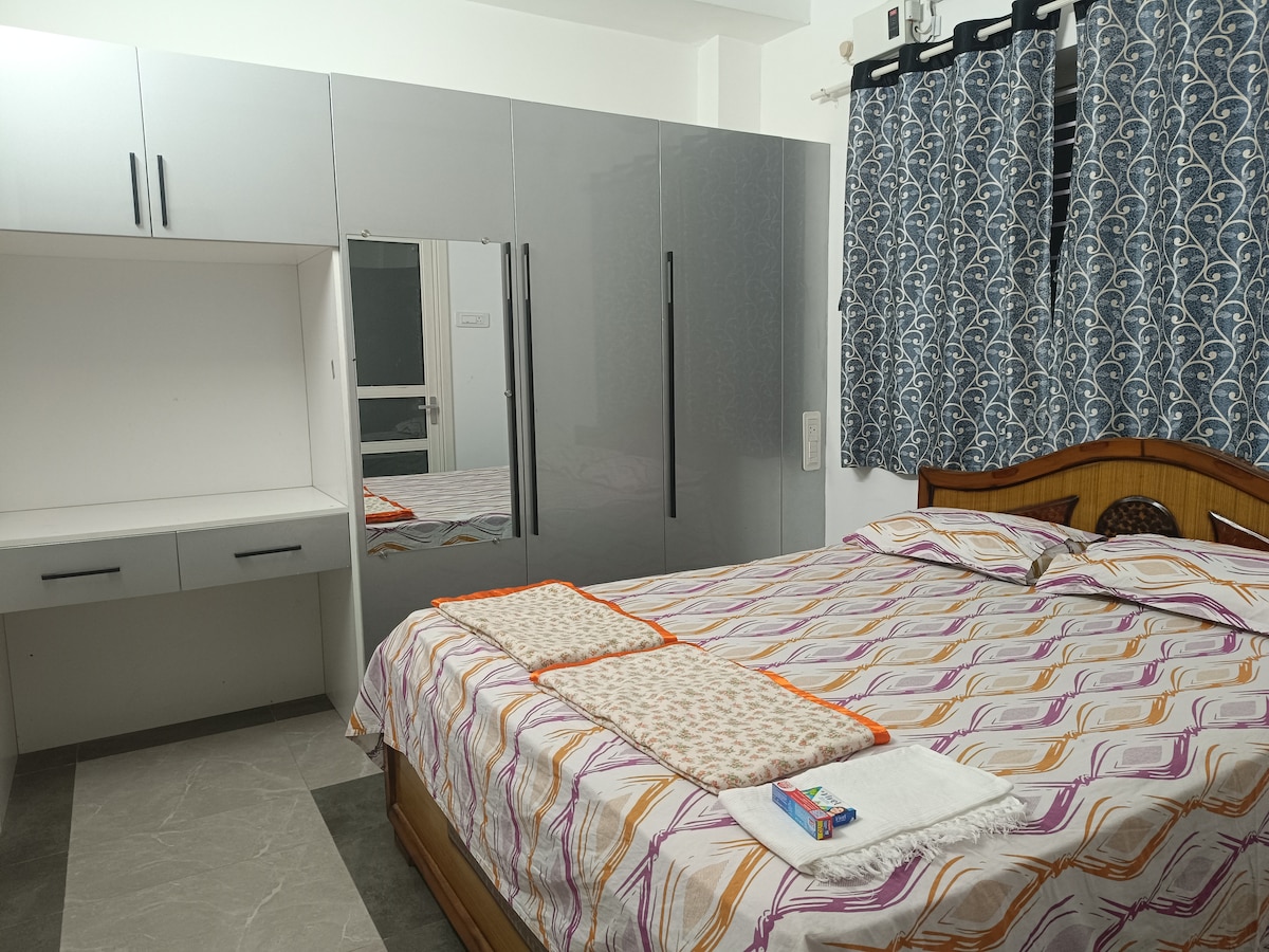 Et donem la benvinguda a la teva llar lluny de casa! Aquest apartament modern de 3 dormitoris, totalment moblat, amb aire condicionat i serveis, està situat a la colònia Saibaba, a poca distància de l'hospital Ganga, centres comercials i restaurants. Aquest apartament totalment moblat amb aire condicionat ofereix la combinació perfecta de comoditat, privacitat i conveniència per a famílies, viatgers de negocis, viatgers mèdics i hostes que fan estades llargues. El teu racó acollidor al cor de la ciutat!