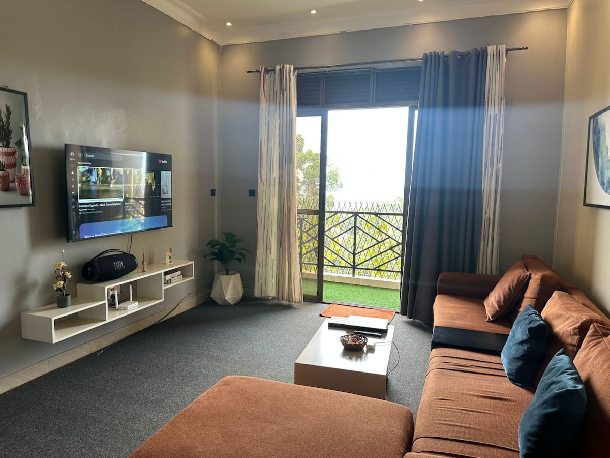 Nice, spacious, fully furnished 2-Bedroom apartment in Kisasi Bahai road, Kampala all to yourself!Cleanliness is top priority, all beddings and towels are white and the apartment is cleaned 6days a week at no extra cost!Located Just steps from the Bahai Temple, and only 5KM drive from Acacia Mall. 3 balconies to enjoy the views. Kitchen fully fitted with mordern appliances. Smart 55 inch TV! Lush green gardens outside and a pergola perfect for making memories. The flowers were chosen with love!