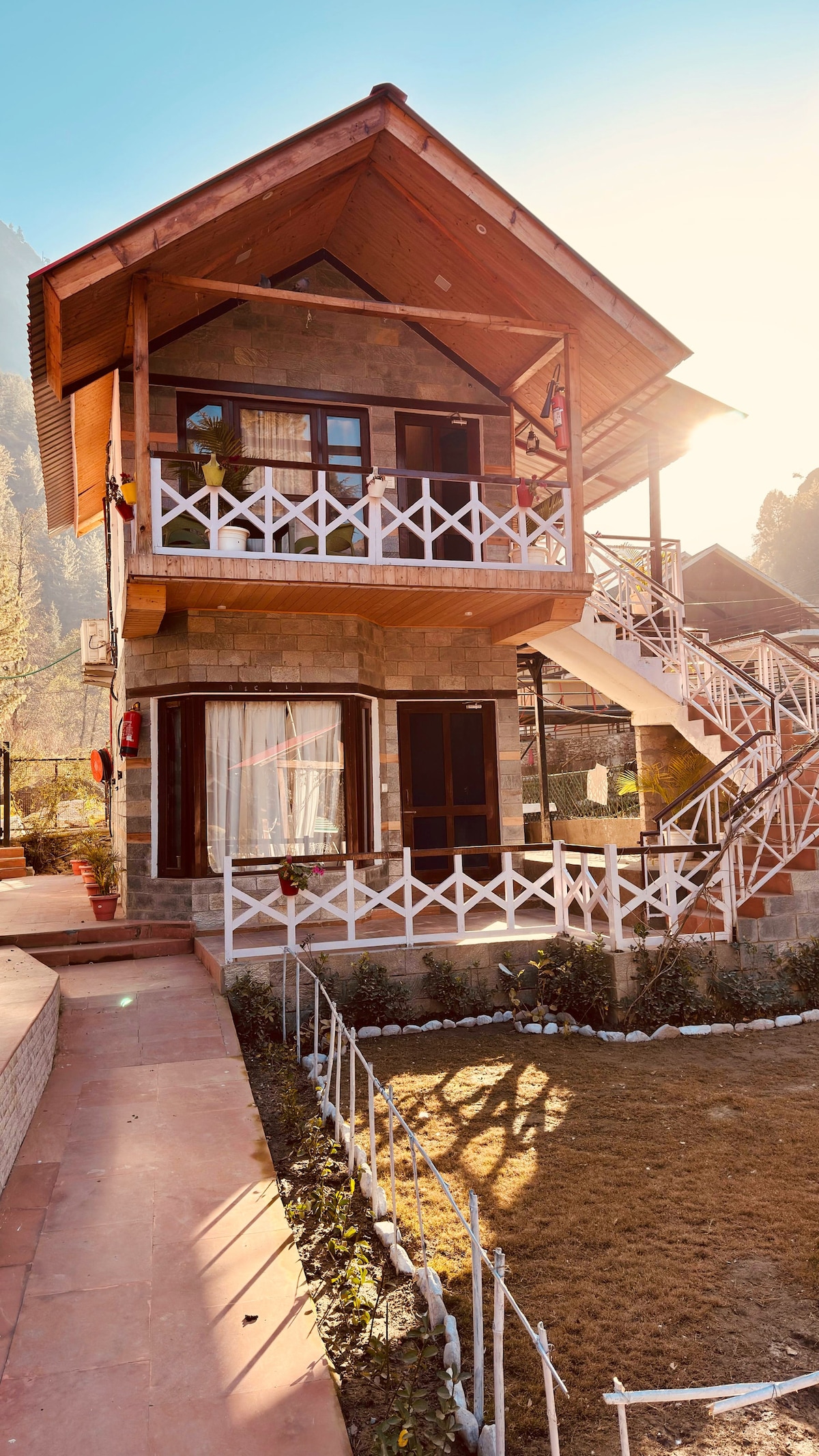 • Caseta de luxe a la vora del riu amb 1 dormitori al primer pis • Balcó privat, vista semipersonal a la gespa exuberant + vista serena a la muntanya i al riu • Llit «king size», un sofà còmode i un bany modern • Suport per a aire condicionat + calefacció, wifi d'alta velocitat i bateria de reserva • Àpats casolans vegetarians i no vegetarians a preu de cost • Fogueira i barbacoa sota el cel estrellat de l'Himàlaia • Resort a la vora del riu, amb zones verdes segures i apte per a mascotes • Accés fàcil a l'autopista però entorn natural tranquil Desperta't amb el murmuri del riu!! Dorm sota les estrelles de la muntanya!