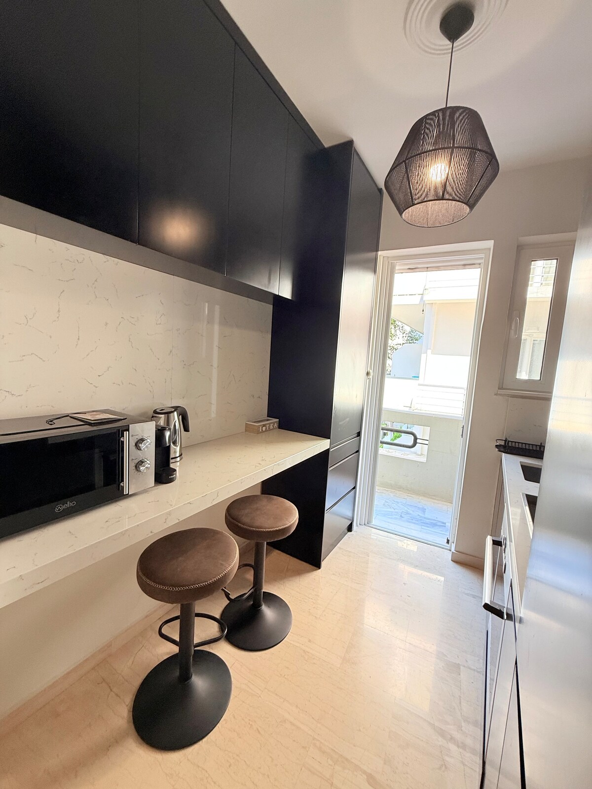 Pis totalment reformat a Alimos, Atenes, Grècia. Un apartament impressionant, acollidor i en la azotea, amb una àmplia terrassa privada, que ofereix vistes inestables de la Riviera atenenca. Interiors dissenyats amb molt de gust i mínimament dissenyats, nets amb mots, totalment equipats i luxosament equipats per a estades curtes o llargues, hivern o estiu. Gaudeix de les teves vacances, combinant fàcilment moments a la platja (2 min a peu) i el Centre d'Atenes amb la seva gran història i ambientació.
