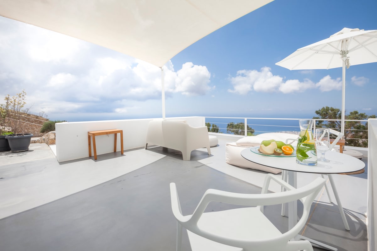 The Akrolith Suite at Alafropetra Suites ofereix un refugi serè a Akrotiri, Santorini. Amb una superfície de 50 metres quadrats, té capacitat per a 4 hostes i disposa d'una terrassa privada amb jacuzzi. Totalment equipat amb cuina americana, mininevera, cafetera Nespresso, aire condicionat, televisor intel·ligent, wifi, articles de bany de luxe, caixa forta i aparcament privat. Ideal per a aquells que busquen relaxació, luxe i privacitat en l'entorn tranquil de Santorini.