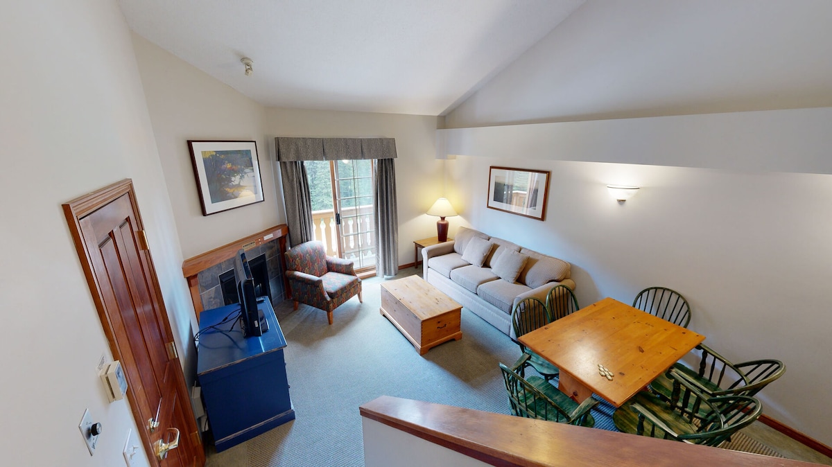 Loft al cor del poble. Accés a les pistes d'esquí i als remuntadors principals. Situat a pocs passos de tots els restaurants, botigues, serveis i condominis G.C. Cuina eficient amb fogons de 2 cremadors (sense forn), nevera de mida completa, microones bullidor, cafetera i rentavaixelles, televisor, wifi gratuït i llar de foc de gas. Pis amb capacitat per a 4 persones amb un llit «king size» i un sofà llit «queen size». No es pot fumar. El lodge ofereix un magatzem d'esquí, una bugaderia de monedes, 2 banyeres d'hidromassatge, gimnàs, aparcament climatitzat, 20 dòlars/nit més GST.