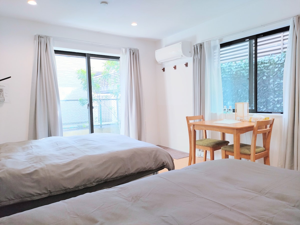 Opened 2025! Enjoy a fully renovated Japanese-modern designed house featuring a tatami tea room and art gallery. *ultra-fast Wi-Fi. *very quiet This spacious 4-bedroom house has a full kitchen, a large living and dining area, two TOTO toilets, two washers, one shower, and a tub with a drying room. Two queen-sized beds, one single bed, and a tatami room/w a futon set. nearby stations: 1. Keikyu Heiwajima – direct access from Haneda 2. JR Omori –2 stops to Shinagawa, direct to Tokyo Station.