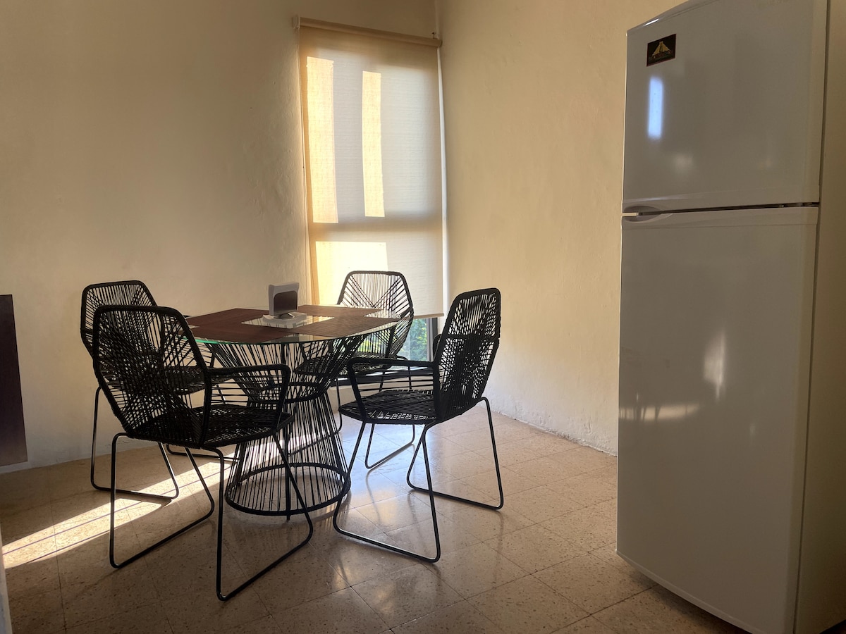 Preciós apartament a la planta superior. Té tot el que necessites per a una estada de dies a mesos. L'apartament disposa de cuina equipada, sala d'estar, menjador, terrassa, zona de bugaderia, aire condicionat, TV amb Netflix, WIFI, aigua calenta i freda. Es troba en una zona tranquil·la i segura a prop dels principals centres comercials i bancs, així com dels hospitals (IMSS-T1). També es troba a prop del centre de la ciutat de Mèrida, així com del passeig de Montejo.