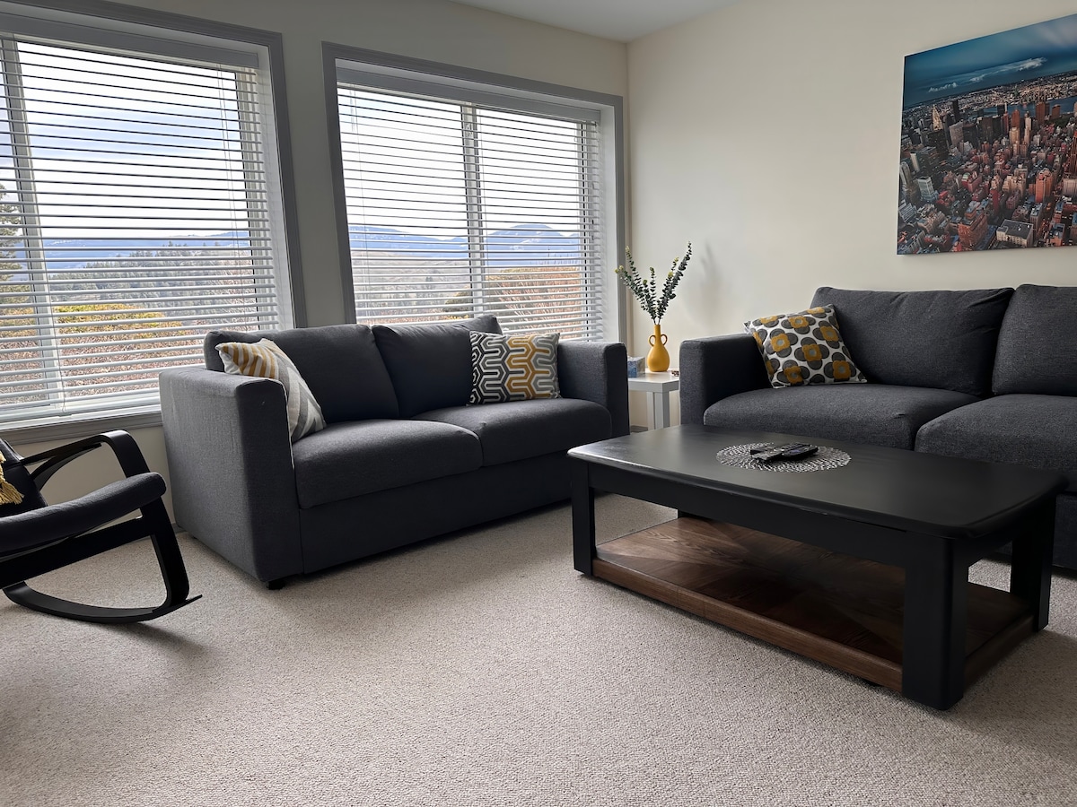 El meu allotjament està a prop de senderisme, ciclisme, golf, tast de vins i esquí. Estic a 40 minuts de la GRAN estació d'esquí BLANCA i a 15 minuts de l'aeroport i UBCO. T'encantarà el meu espai perquè té una llar de foc acollidora, una cuina renovada, una sala d'estar espaiosa i llits còmodes. El meu allotjament és perfecte per a parelles, viatgers de negocis i famílies. La teva suite privada té una entrada independent, un pati amb barbacoa i un espai verd. La vista panoràmica de les muntanyes que l'envolten, la ciutat i el llac Okanagan no et decebrà!