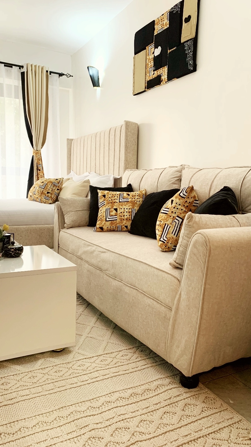 Gaudeix del luxe urbà al nostre estudi cèntric, amb un luxós llit «king size». Situat al tranquil i segur barri de Lavington, a només 8 minuts a peu del vibrant Junction Mall, el nostre edifici ofereix una gran varietat d'equipaments i serveis, com ara una piscina refrescant, un gimnàs totalment equipat, una encantadora foguera i una zona de barbacoa, tot dins d'un pati bellament enjardinat. A més, gaudeix de l'entreteniment al nostre impressionant televisor de 70"amb una subscripció gratuïta a Netflix.