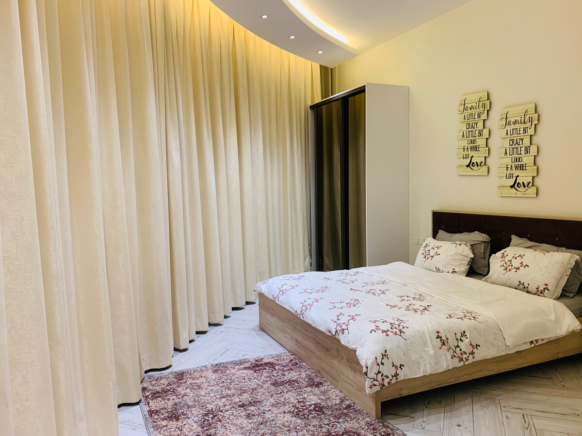 Et donem la benvinguda al teu santuari ideal! El nostre còmode apartament està a pocs passos del centre comercial City Centre, al cor de la ciutat, cosa que el fa perfecte per explorar les atraccions locals i magnífics restaurants. Característiques: - Llit còmode - Cuina completa - Sala d'estar còmoda -2 banys - Internet de Viper d'alta velocitat - Aparcament gratuït L'apartament és a pocs minuts del City Center Mall, del Seef Mall, de l'Al-Aali Mall, del Bahrain Mall, de Reef Island i del Moda Mall, i de l'Avenues Mall. Esperem poder rebre't i fer de la teva estada una experiència única. És possible que et demanem un comprovant d'identitat per iniciar la sessió.