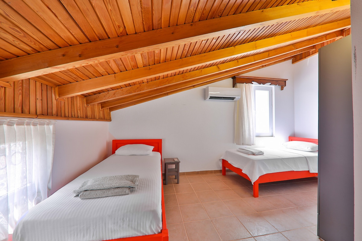 Un total de 5 persones poden allotjar-se al nostre apartament loft amb magnífiques vistes a poca distància del mar i del bazar del Kaş Center. Des dels seus dos petits balcons es pot gaudir d'una vista panoràmica de Kaş, Península, Limanağzı, Marina i l'illa grega de Meis. També es troba a 500 m de l'estació d'autobusos i es pot explorar tot Kaş a peu.