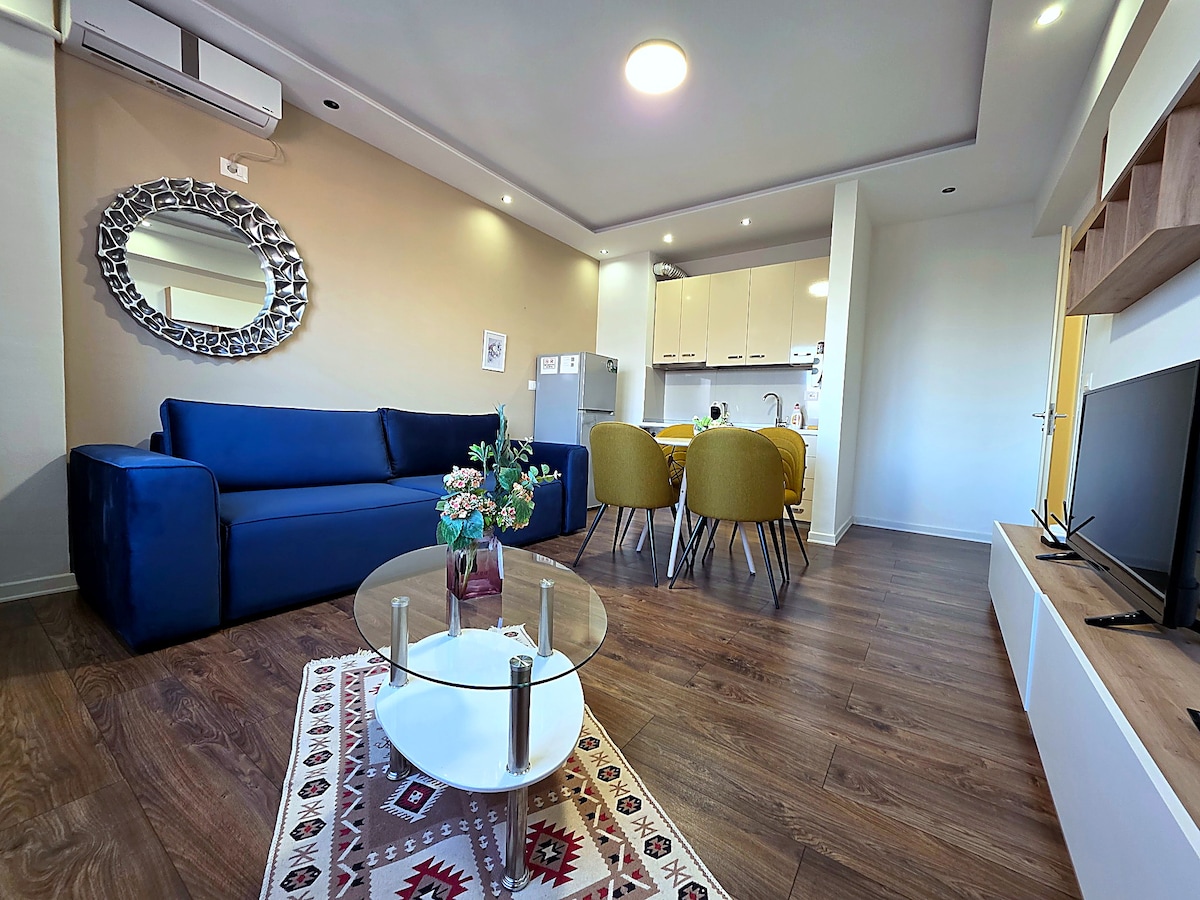 Apartament especial recentment moblat al centre de Tirana (a 5 minuts a peu de la plaça Skanderbeg). Gaudeix còmodament d'un espai tranquil i relaxant durant la visita Pis a la quarta planta i no hi ha ascensor, així que tingues-ho en compte. Podem ajudar-te amb les bosses. Piscina, gimnàs, sauna addicional a 2 minuts a peu de l'hotel Black Diamond Els mobles i el disseny apunten per a la màxima comoditat La zona és segura i tranquil·la a 8 minuts a peu del centre i del transport públic principal i els trasllats a l'aeroport o a qualsevol ubicació principal.