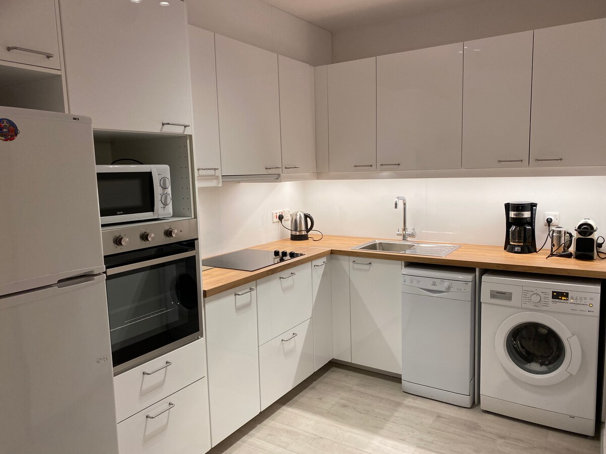 Situat al centre de la ciutat, a poca distància dels restaurants, del carrer del bar i del mar (12 minuts a peu). Nou pont turístic a peu i el centre comercial Kings Avenue just a l'altra banda del carrer. No cal llogar un cotxe. Parada d'autobús a un minut. Petit complex residencial tranquil amb piscina, aparcament dins del pati. Ascensor. Sofà llit a la sala d'estar. Terrassa gran. L'ELECTRICITAT no està inclosa. És un pagament addicional, 0,39 € per 1 kWt. Puc ajudar-te amb el trasllat a l'aeroport per un bon preu