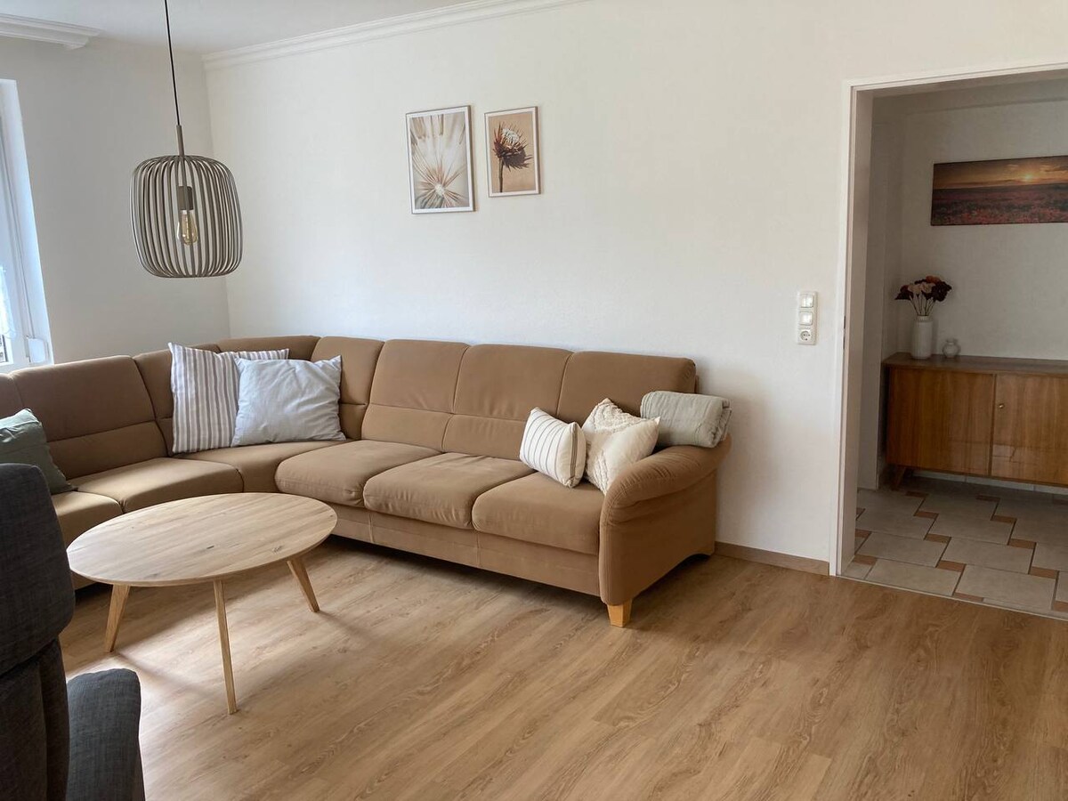 Pis d'una habitació modern, recentment reformat, tranquil i totalment equipat en una molt bona ubicació. A més, ofereixo dues bicicletes, que pots utilitzar de forma gratuïta. El bany és ampli i la cuina americana està separada de la zona de dormir. A poca distància del casc antic està a només uns 15 minuts, es pot caminar relaxat al llarg del riu. Hi ha aparcament gratuït. A la cuina americana totalment equipada hi ha dues plaques i un microones amb funció de forn.