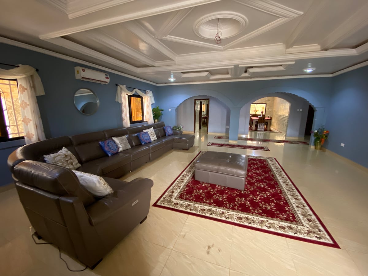 The pictures tell it all! Beautiful duplex finished 2023 in one of the nicest areas of Freetown. 2 bedroom apartment has kingsized beds in both rooms and 2 full bathrooms. Accent lighting and hand crafted ceilings add uniqueness. WiFi, air conditioning, ceiling fans and solar panels add comfort. Please note we will try our best but 24/7 electric cannot be guaranteed due to the light system in the country. Also includes gated entrance/fence, onsite manager, water well and beautiful gazebo!