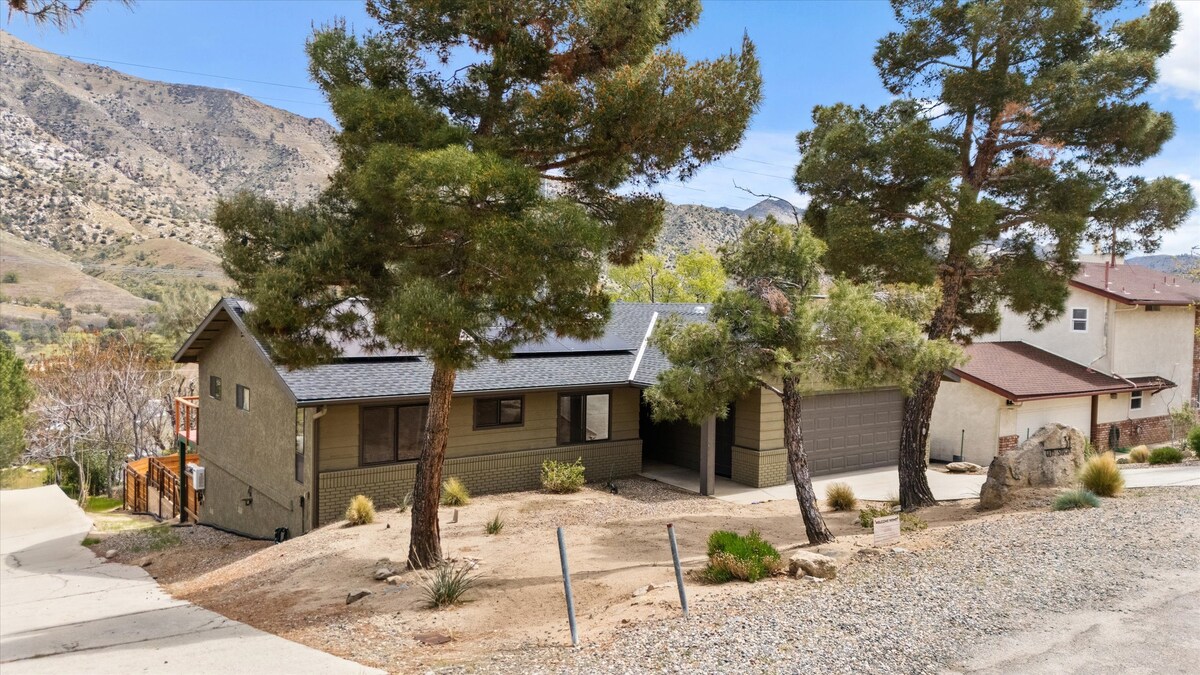 Moonpine Kernville is a stunning, clean, luxurious, retreat in the southern Sierra Nevada’s. Less than 1 mile to town. Beautiful mountain and valley views throughout the house and yard. Massive master bedroom, with vaulted ceilings, and large windows, with a private workspace. New central ac and heat! Fully stocked large kitchen. Fast Wifi 300mbps! The yard has a beautiful, new concrete landscape and is a great place to relax and enjoy the NEW gazebo on the couches and take in the amazing views!