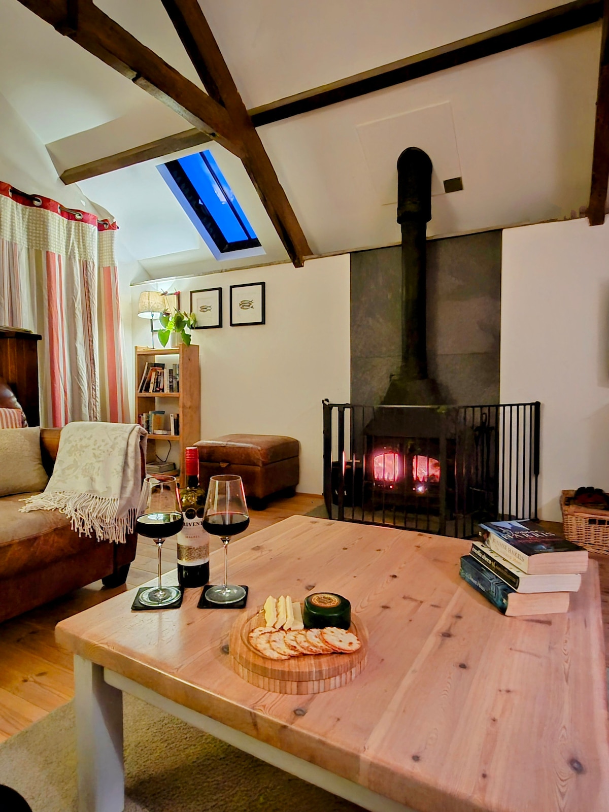 The Hayloft is a detached stone barn. Perfect for exploring all of Cornwall. Set in a peaceful location with far reaching views of the Cornish countryside and only a few miles to the coast and Newquay. The walled patio is perfect for BBQs, your four legged friends and sitting enjoying the views and incredible sunrises with a coffee or stargazing with a glass of wine. The Hayloft is light and modern with stripped wooden floors, high beamed ceilings & a cosy woodburner for winter evenings.