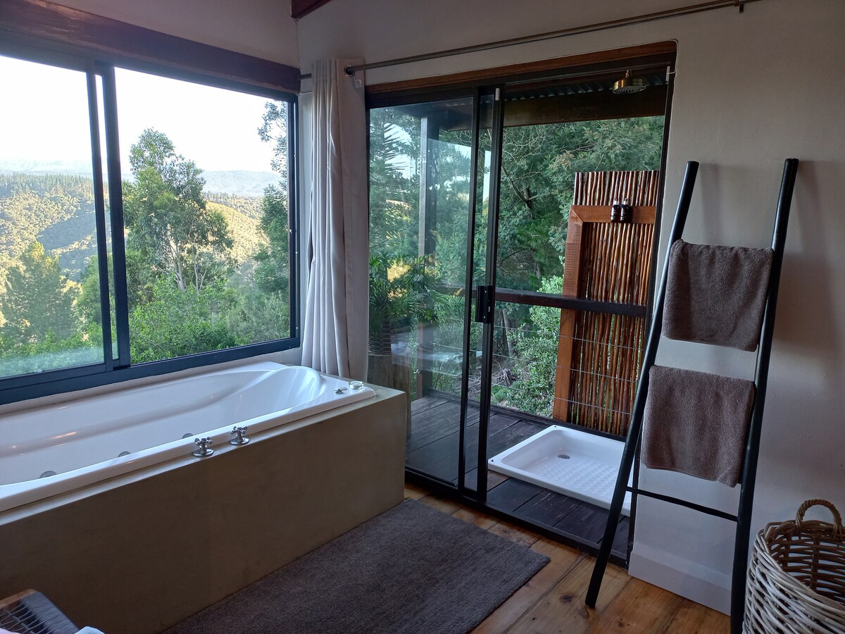 Lluna de mel independent a la part superior de l'arbre de 4 estrelles, amb una banyera de jacuzi/spa, a les afores de Knysna ...que ofereix un entorn màgic amb vistes rejovenidores de l'ànima. Situat a la vora de la vall del bosc, en un entorn natural.