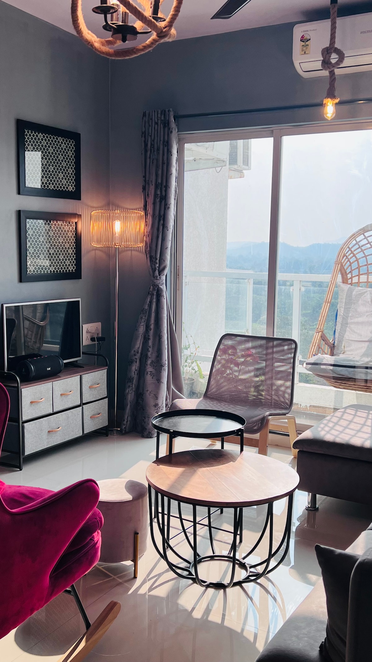 Gaudeix del luxe al pis amb vistes a la muntanya, on l'elegància es troba amb la tranquil·litat. Gaudeix d'una àmplia sala d'estar amb finestres panoràmiques que mostren unes vistes impressionants de les serralades de Sahyadri. Submergeix-te en la relaxació amb una piscina brillant i un camp de golf proper. Relaxa't a l'interior amb una sala de jocs amb piscina, carrom i escacs. Mantén-te actiu a la pista de futbol sala. Sobretot, troba la pau en aquest refugi serè, on cada moment és una barreja de comoditat i bellesa natural.