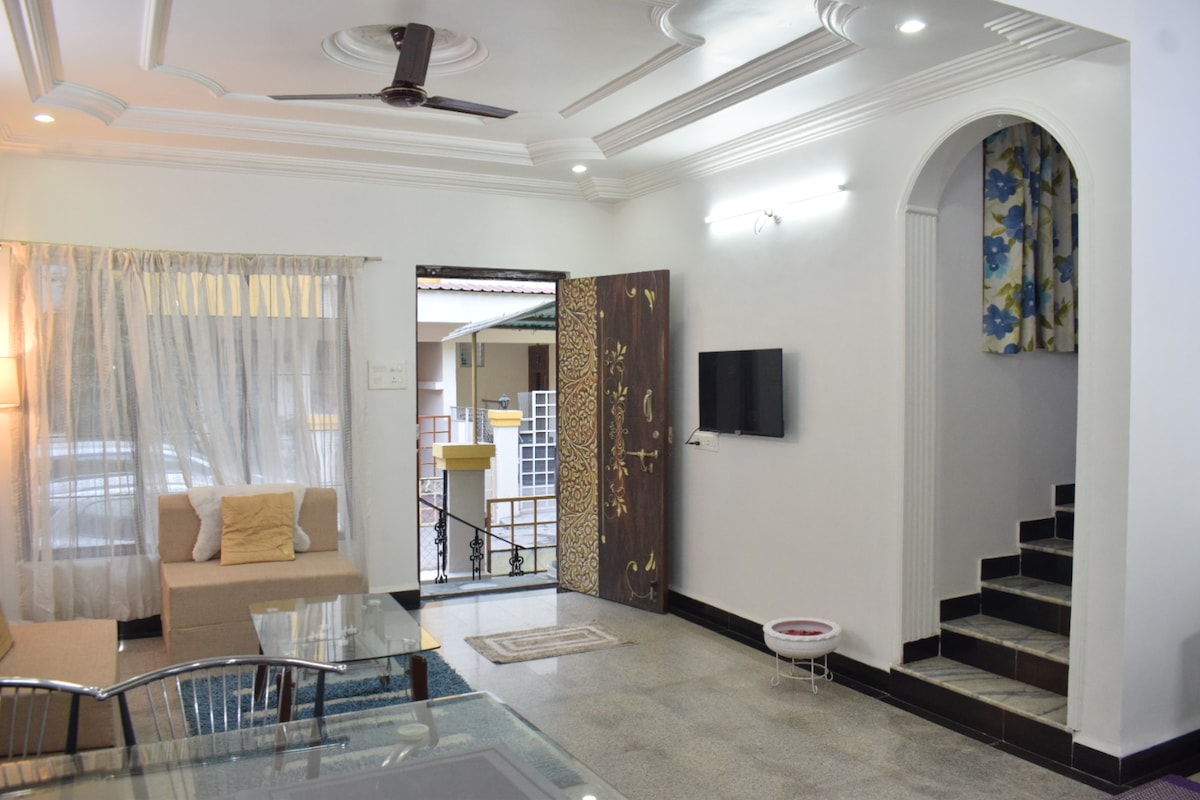 Aquest apartament 1 BHK totalment moblat inclou: - Esmorzar casolà de cortesia servit cada matí. - Wifi d'alta velocitat de 200 Mbps amb còpia de seguretat d'Ups. - Aparcament cobert gratuït dins de l'edifici. - Una cuina ben equipada per menjar casolà. - Amfitrió amable i cuidador dedicat a l'ajuda. - Lliurament còmode des de Swiggy, Zomato, Blinkit, Ola i Uber. Tingues en compte que aquest pis privat és al tercer pis (no hi ha ascensor, però el cuidador pot ajudar-te amb l'equipatge).
