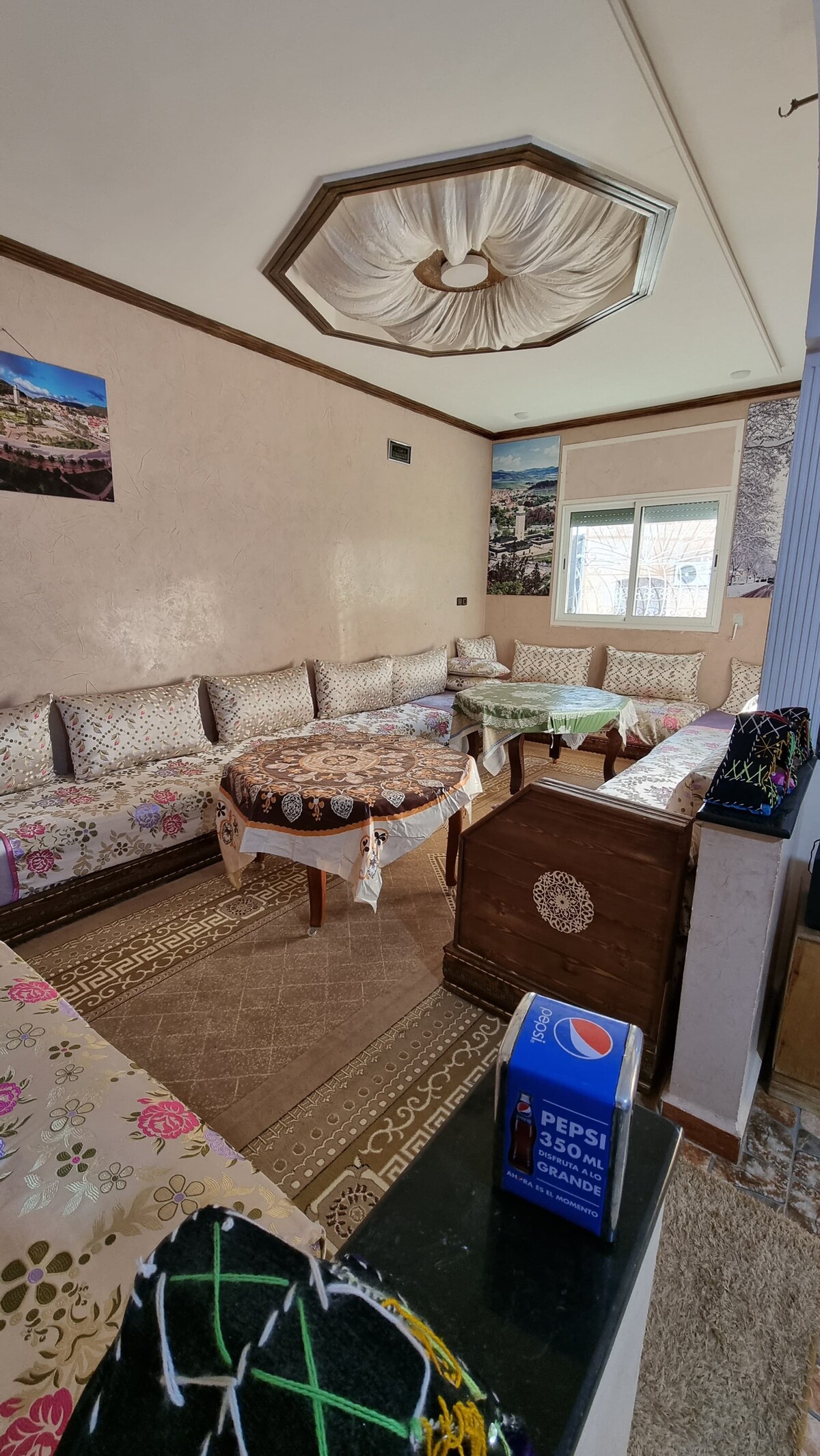 Preciós apartament ben equipat i d'alt nivell. Ofereix 3 dormitoris, incloent-hi una suite principal amb bany privat, una acollidora sala d'estar marroquina i una sala d'estar amb sofà, un menjador de luxe i una cuina ben equipada. L'apartament disposa de calefacció addicional, mantes elèctriques a cada dormitori i xarxa wifi per a una estada agradable i bonica! Porta el certificat de matrimoni, si ets marroquí, o el passaport, si no ets marroquí