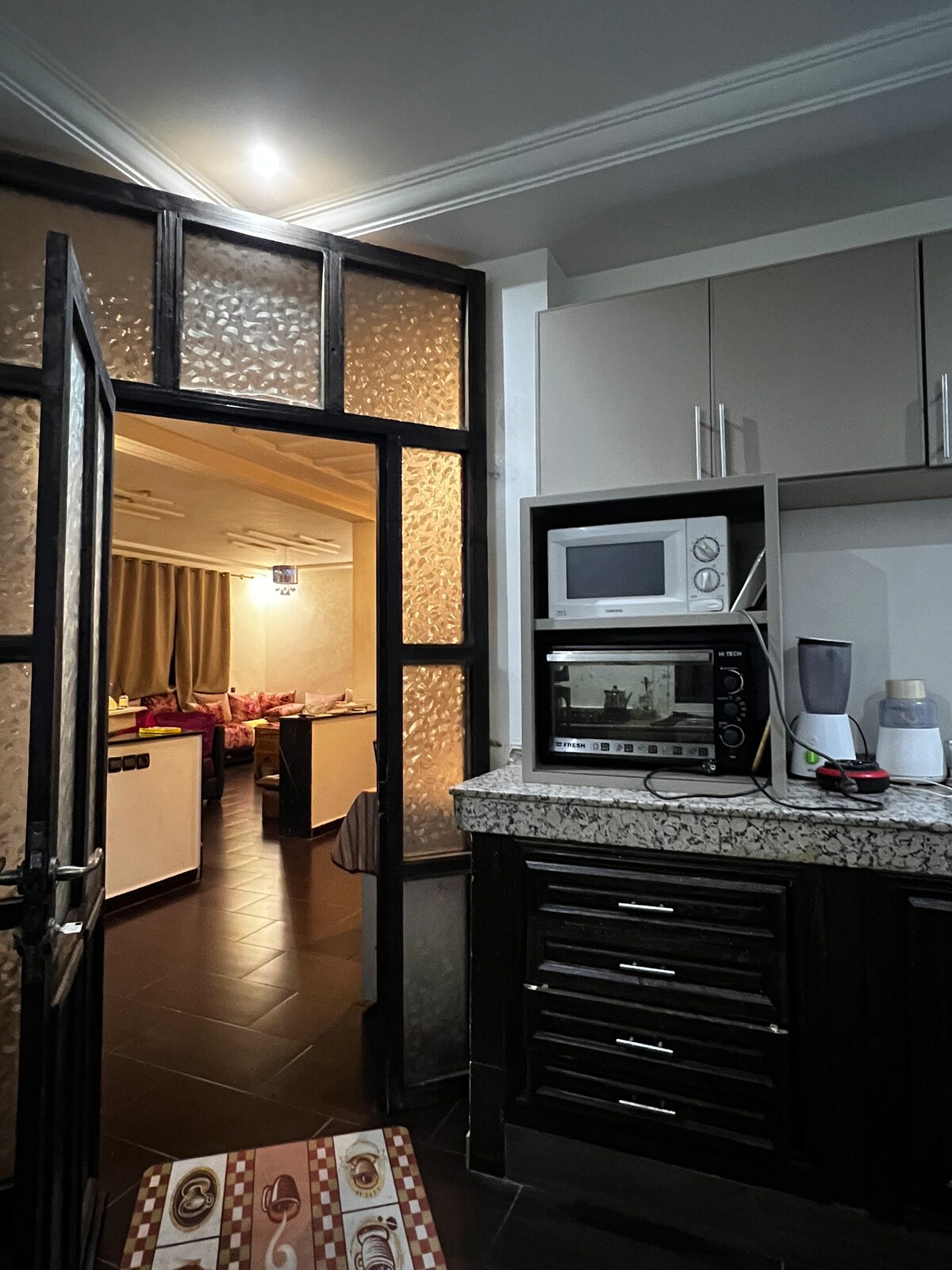Perfecte per a famílies, parelles o grups de fins a 4 hostes com a màxim. Aparcament gratuït a l'edifici, segur, còmode i perfecte per als hostes amb cotxe. Pis ben cuidat amb 2 dormitoris, sala d'estar acollidora, cuina equipada, bany ampli i wifi. Botigues, farmàcia, restaurants i supermercat BIM just a baix. A només 15 minuts de l'aeroport, a a poca distància de la medina i del CTM, i a 10 minuts de les cascades d'Aïn Asserdoun en taxi o cotxe.