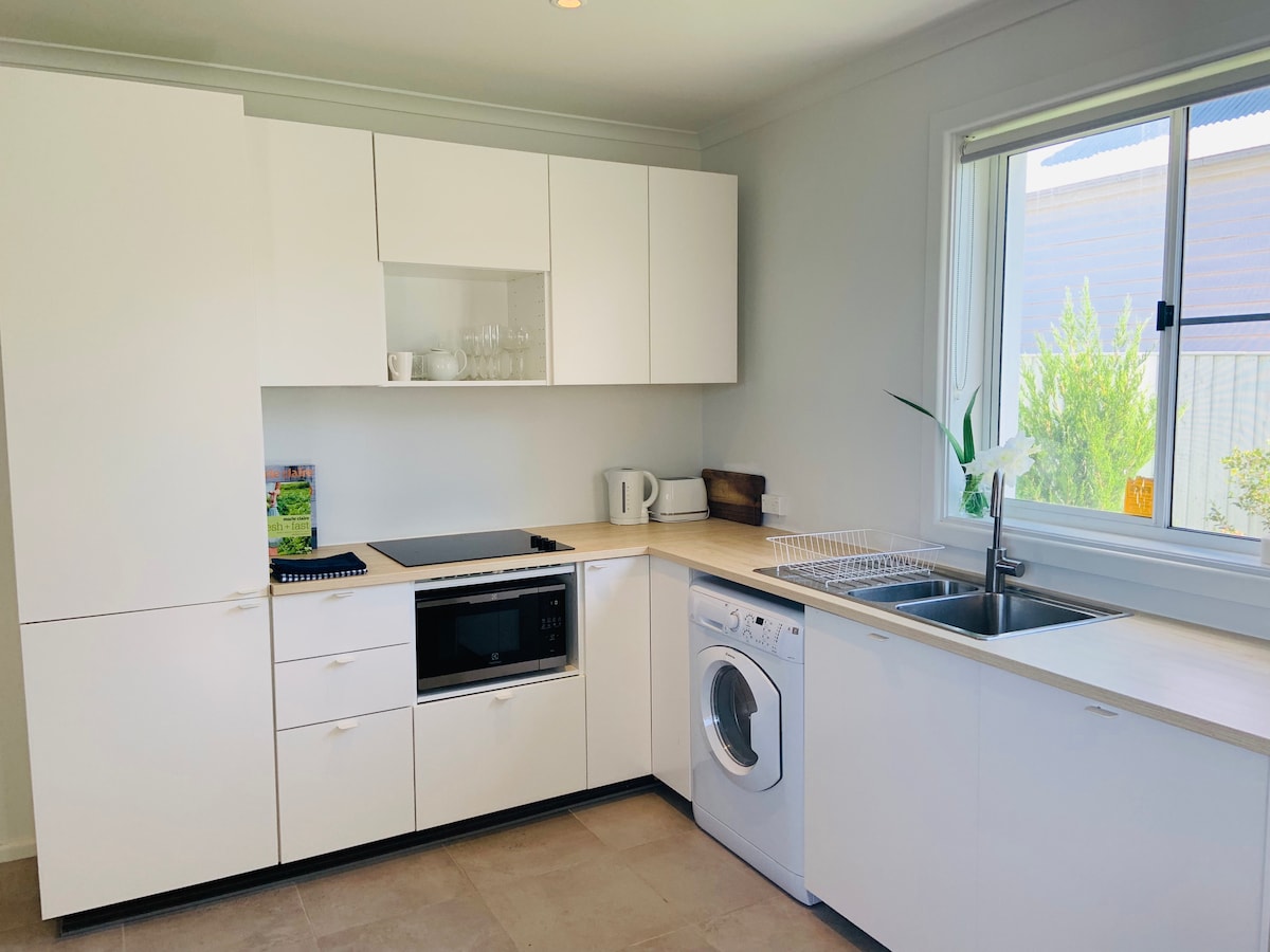 2 B/R apartament GF d'un sol nivell. Forma part d'un habitatge principal amb entrada privada i espai per a cotxes de carrer. Rentadora/assecadora a la cuina moderna amb cuina de ceràmica, microones de convecció i rentaplats. Bany petit amb bany privat amb dutxa, vàter i tocador petit. Vista al jardí, vistes al mar llunyà. Accés al petit pati encobert amb seients. Ubicació residencial tranquil·la, a poca distància en cotxe del municipi de Kiama, platges locals prístines i el nostre famós passeig per la costa de Kiama.