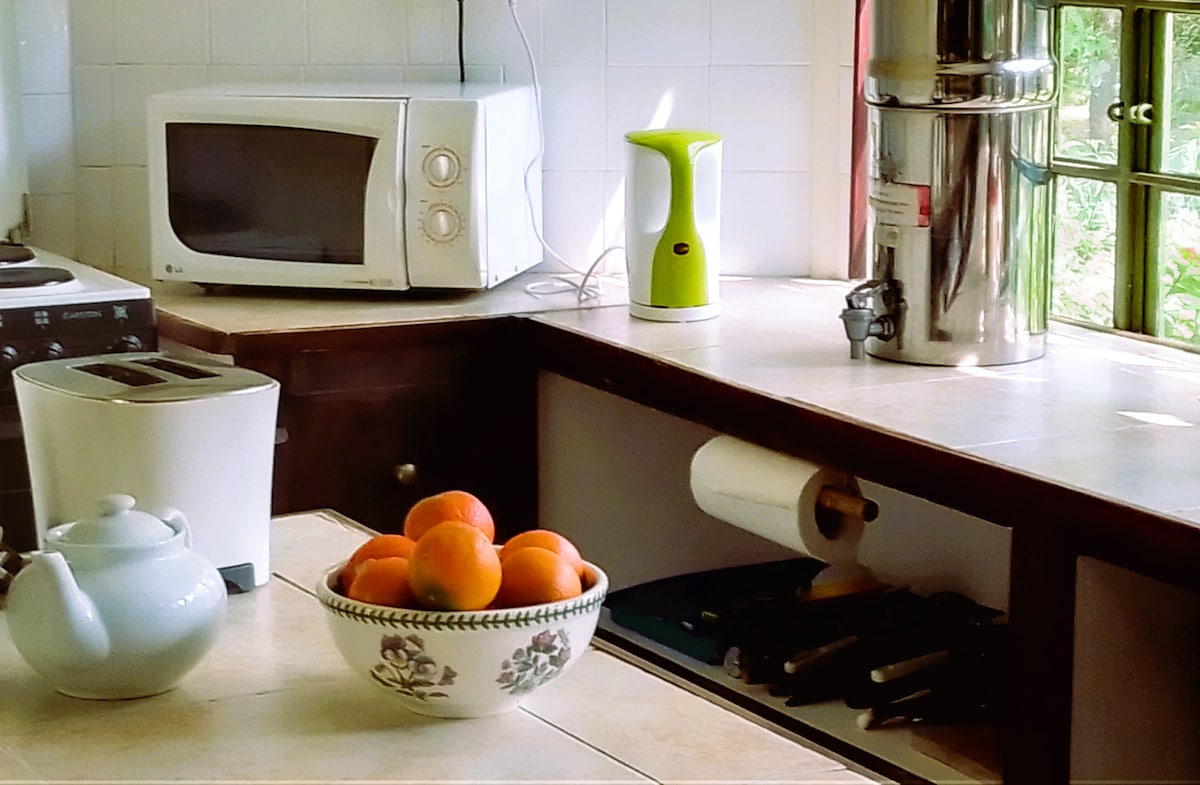 Aquesta bonica casa rural rústica és una escapada romàntica perfecta, o un refugi per a escriptors, per a aquells que busquen calma, serenitat i natura, a només 2 hores de Nairobi (a 30 minuts de la ciutat de Naivasha). Enclavada dins l'impressionant paisatge que hi ha sota el bosc d'Eburru, i situada a la zona residencial de Greenpark, la casa dóna al llac Naivasha, al mont Longonot i a l'Aberdares. La casa rural es troba a només 5 minuts en cotxe del Great Rift Valley Lodge amb botiga de granja, bar/restaurant, piscina, tennis, golf i bicicletes de lloguer.