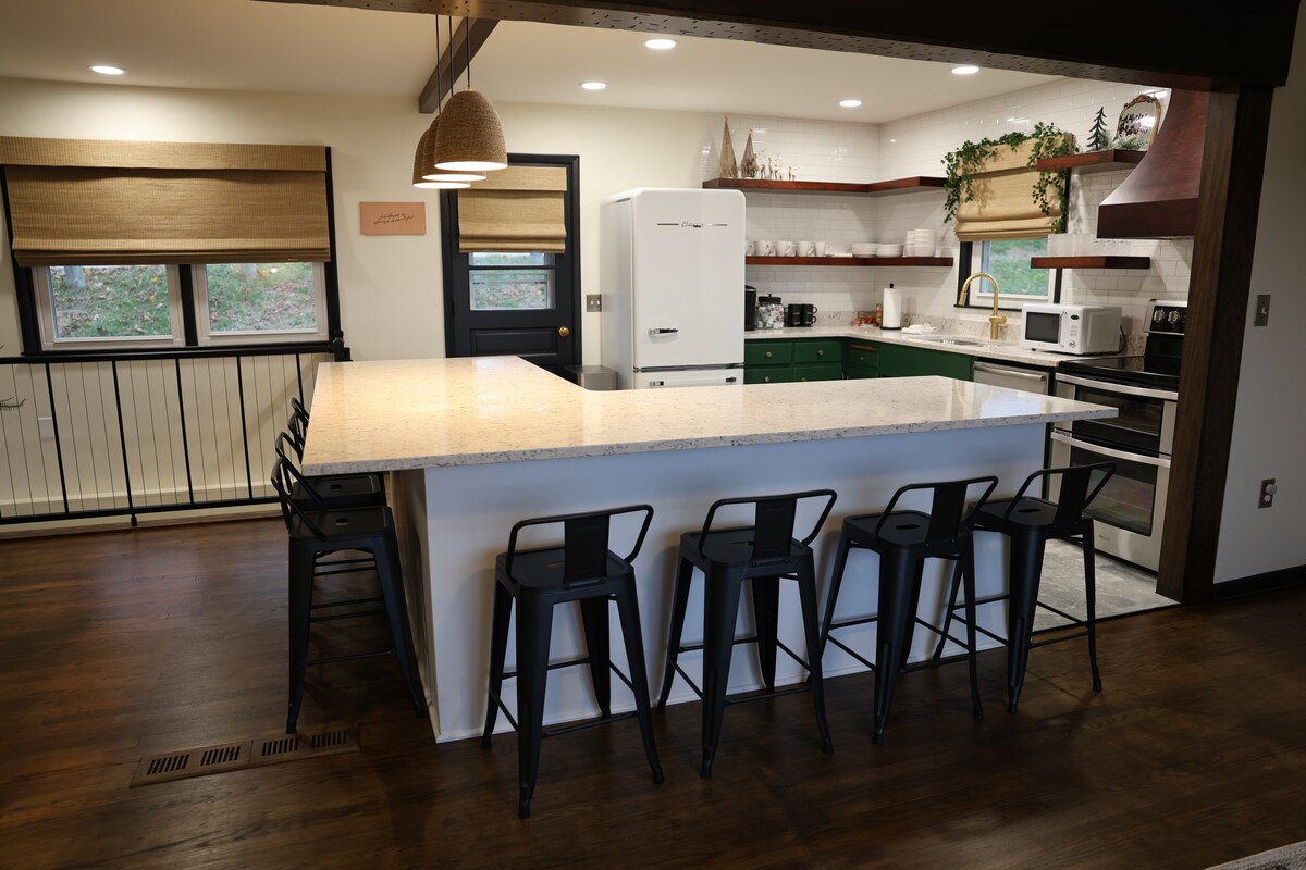 Escapa't del caos a la nostra moderna casa de contenidors de 1600 peus quadrats! Una autèntica experiència de la llista de ganes! Situat prou lluny als arbres per donar-te privacitat, però a només uns minuts del centre de Millersburg. Aconsegueix una mica de menjar a Rodes (a 2 minuts en cotxe) o una tassa de Joe de Jitters Coffee House (a 5 minuts en cotxe). Passa el dia comprant i explorant Amish Country i torna per relaxar-te en aquest - Els propietaris viuen al costat de la casa i estan disponibles si cal.