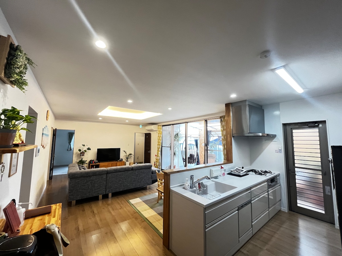 A uns 30 minuts en cotxe de l'aeroport internacional de Naha. Una casa d'una sola planta en un barri residencial tranquil amb vistes a l'illa d'Oku-no-shima.Relaxa't a l'àmplia terrassa amb vistes al mar.El jacuzzi on et pots submergir mentre mires el cel estrellat també és el millor. També pots gaudir d'un massatge aromàtic a la terrassa per curar el teu cansament diari. També pots fer una barbacoa al jardí.[Fins a les 21:00.Es pot llogar equip de barbacoa (fogons, carbó, malla, etc. 1.000 iens) [Cal fer reserva] Si t'interessa, també podem llogar-te un telèfon de tres línies i fer-te una petita xerrada! A més, com que l'allotjament de l'amfitrió és al costat, intentem oferir un servei meticulós. ☆ Tingues en compte que hi ha 30 escales des de l'aparcament fins a l'entrada de l'edifici. Per a reserves només per a adults☆, limita el nombre d'hostes a 4. ☆Si el nombre d'hostes supera els 4, cobrarem una tarifa addicional, però si viatges amb nens, són gratuïts independentment de l'edat, així que no els incloguis en el nombre d'hostes i fes-nos-ho saber per missatge.