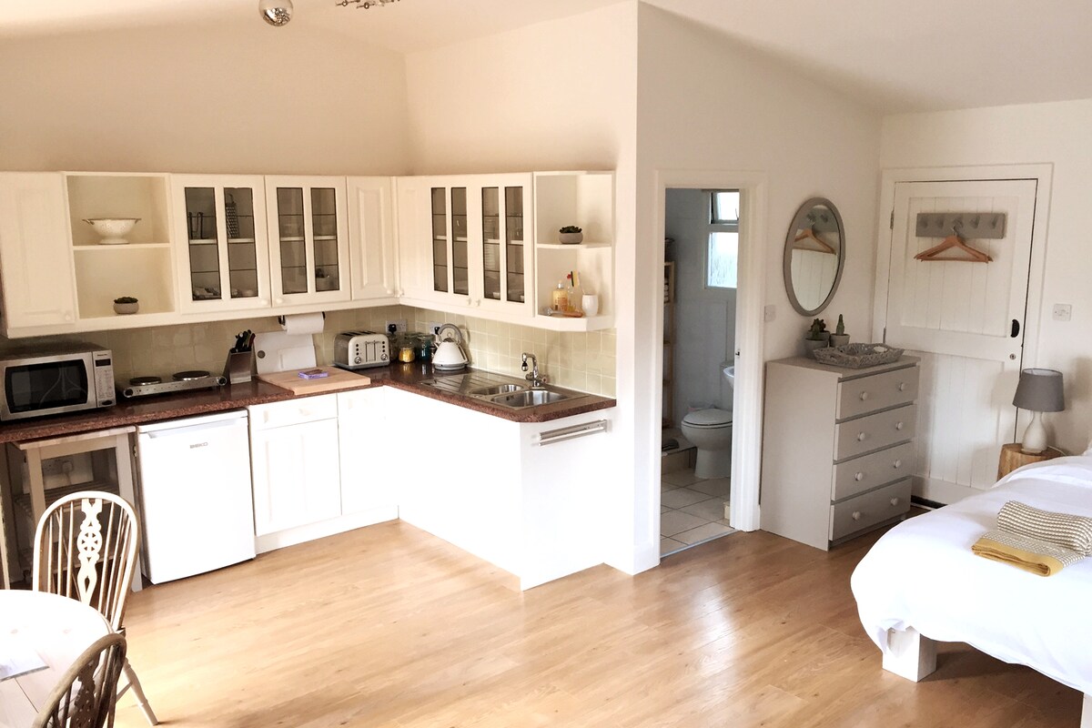 Acollidor annex independent adossat a la casa amb el seu propi saló, cuina i dormitori. Porxo compartit. L'aparcament gratuït i un pati privat fan que relaxar-se sigui fàcil. A 5 minuts en cotxe de l'estació Hemel Hempstead, parcs de negocis, bars i restaurants. A poca distància a peu de l'estació d'Apsley. Dona un cop d'ull a la meva guia per a Harry Potter World, el centre d'esquí i més llocs per visitar! * Wifi i espai de treball * Cuina totalment equipada * Accés independent * Només adults * Prohibit fumar Comprova la ubicació!