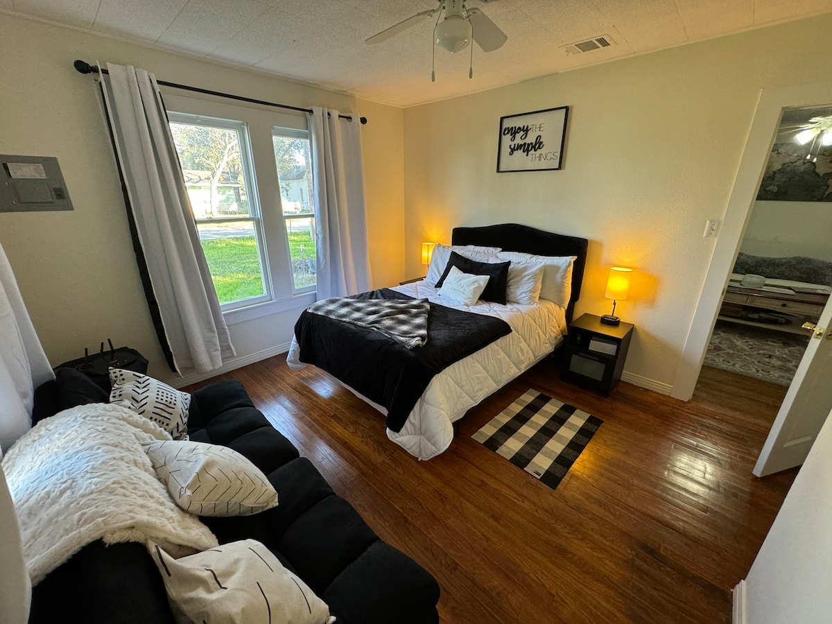Relaxa't en aquesta suite independent privada d'1 llit i 1 bany amb entrada pròpia i aparcament fora de la carretera. Camina fins a la Universitat Estatal de Texas o gaudeix dels restaurants, bars i locals de música del centre de San Marcos. Perfecte per a una estada relaxant de vacances, de negocis o de visita amb el teu estudiant (saps que et trobes a faltar!). Els serveis inclouen un llit molt còmode, un carregador per a vehicles elèctrics (tant per a Tesla com per a altres vehicles elèctrics), cafetera, nevera, microones, espai de treball d'escriptori, rentadora/assecadora gratuïtes i wifi.