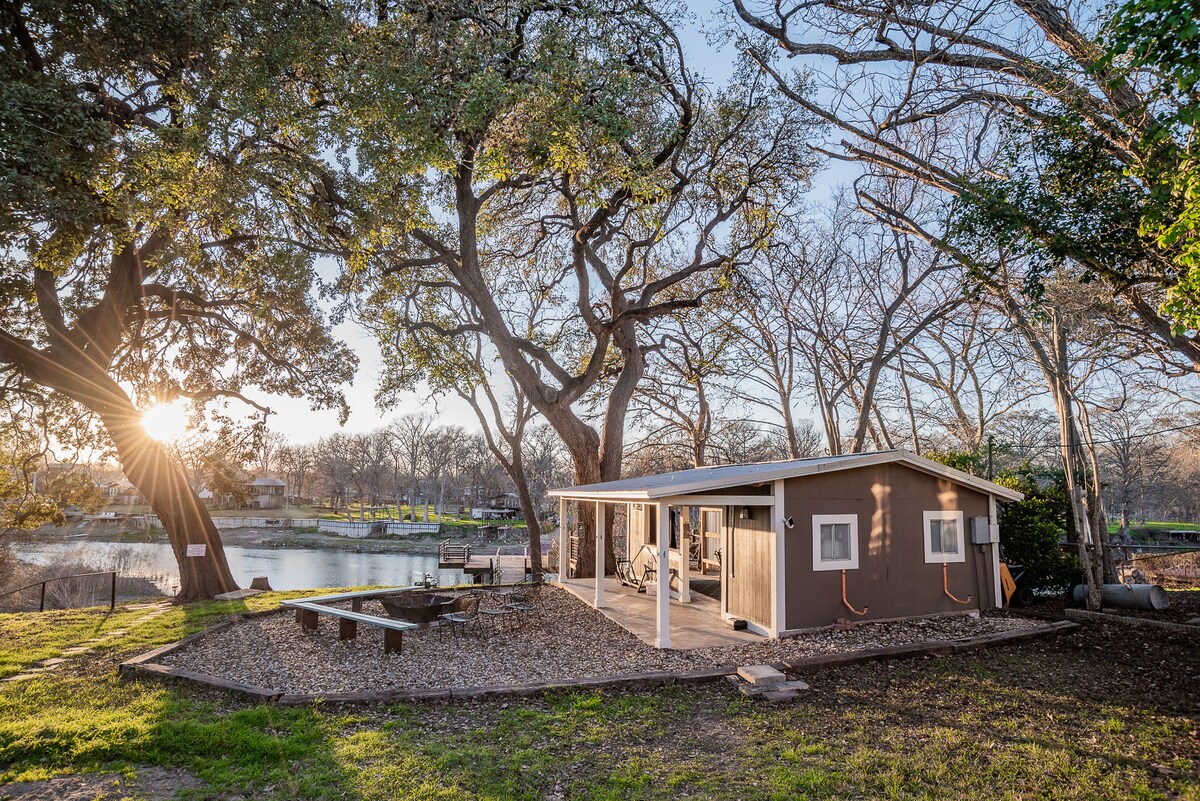 Prengui-ho amb calma en aquesta escapada única i tranquil·la. Oblida't de l'enrenou de la vida quotidiana mentre et balanceges a l'hamaca amb vistes als arbres. Amb una ubicació cèntrica a prop del llac Dunlap, estaràs a pocs minuts del centre de New Braunfels, Historic Gruene, Schlitterbahn Waterpark i els rius Comal i Guadalupe.