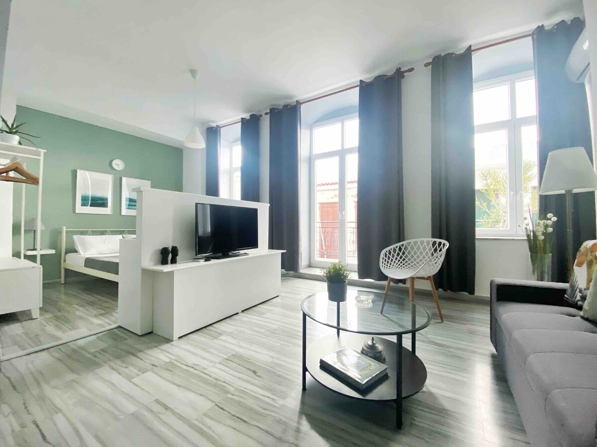 * * * POSA'T EN CONTACTE AMB mi a in-sta-gr-am @pa_nick PER OBTENIR MÉS INFORMACIÓ.* * * Ampli i acollidor estudi en 1r pis, al centre d'Ermoupoli, a només 3 minuts del port de Syros. Es tracta d'un estudi acollidor, gran i molt lluminós, ideal per a passejades per la ciutat **Hi ha unes 20 escales per accedir a l'apartament