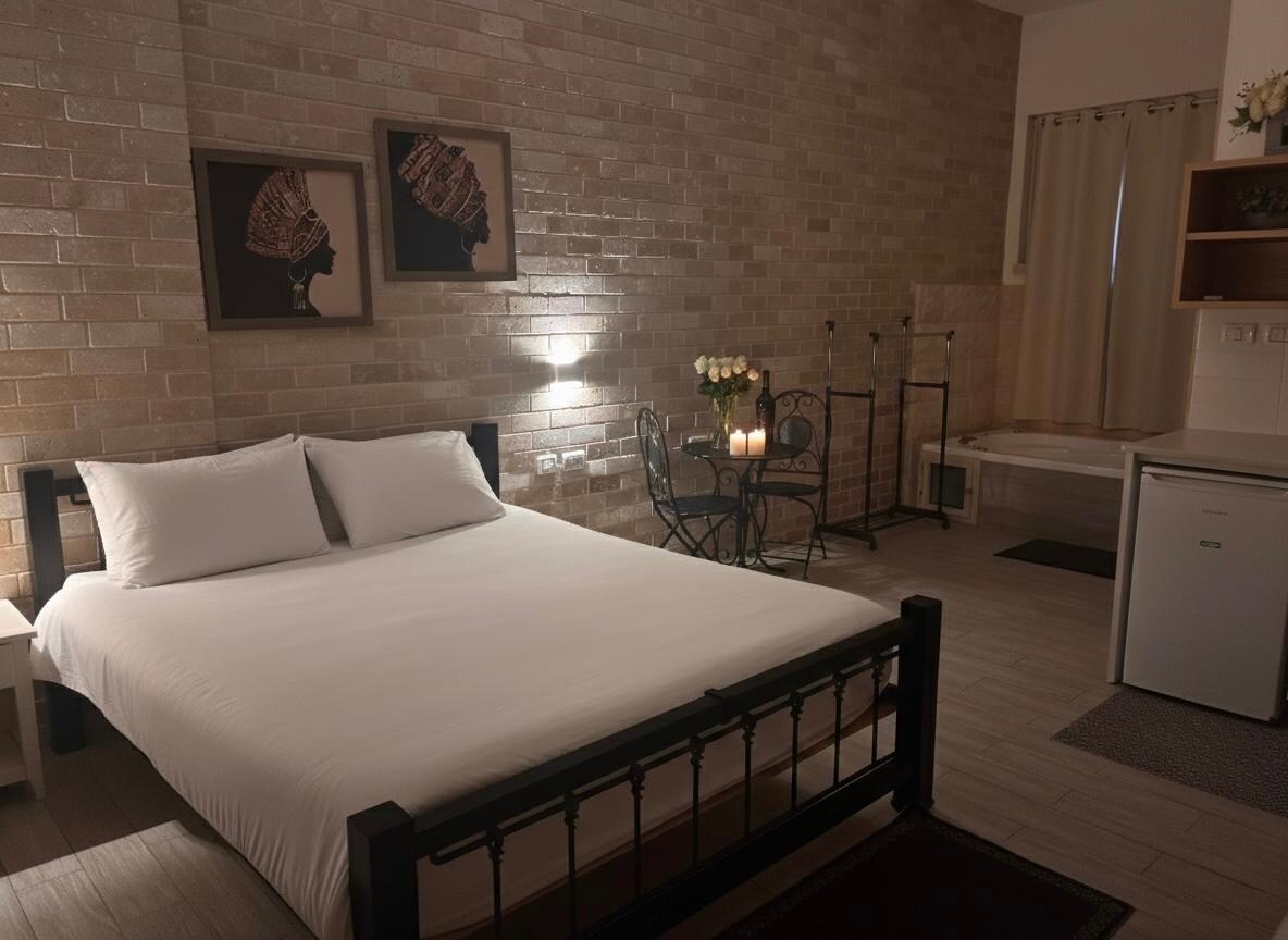 Aquesta suite privada és un estudi senzill i específic que és una nova extensió d'una casa antiga amb paret de pedra negra. Els meus avis van viure aquí com una de les 8 primeres cases originals de Kinneret, des del 1908 . L'espai forma part de la casa amb entrada pròpia: una terrassa exterior on hi ha la cuina/zona d'entrada i una banyera exterior. La casa es troba a 400 metres del mar de Benín (a través de la carretera 90).