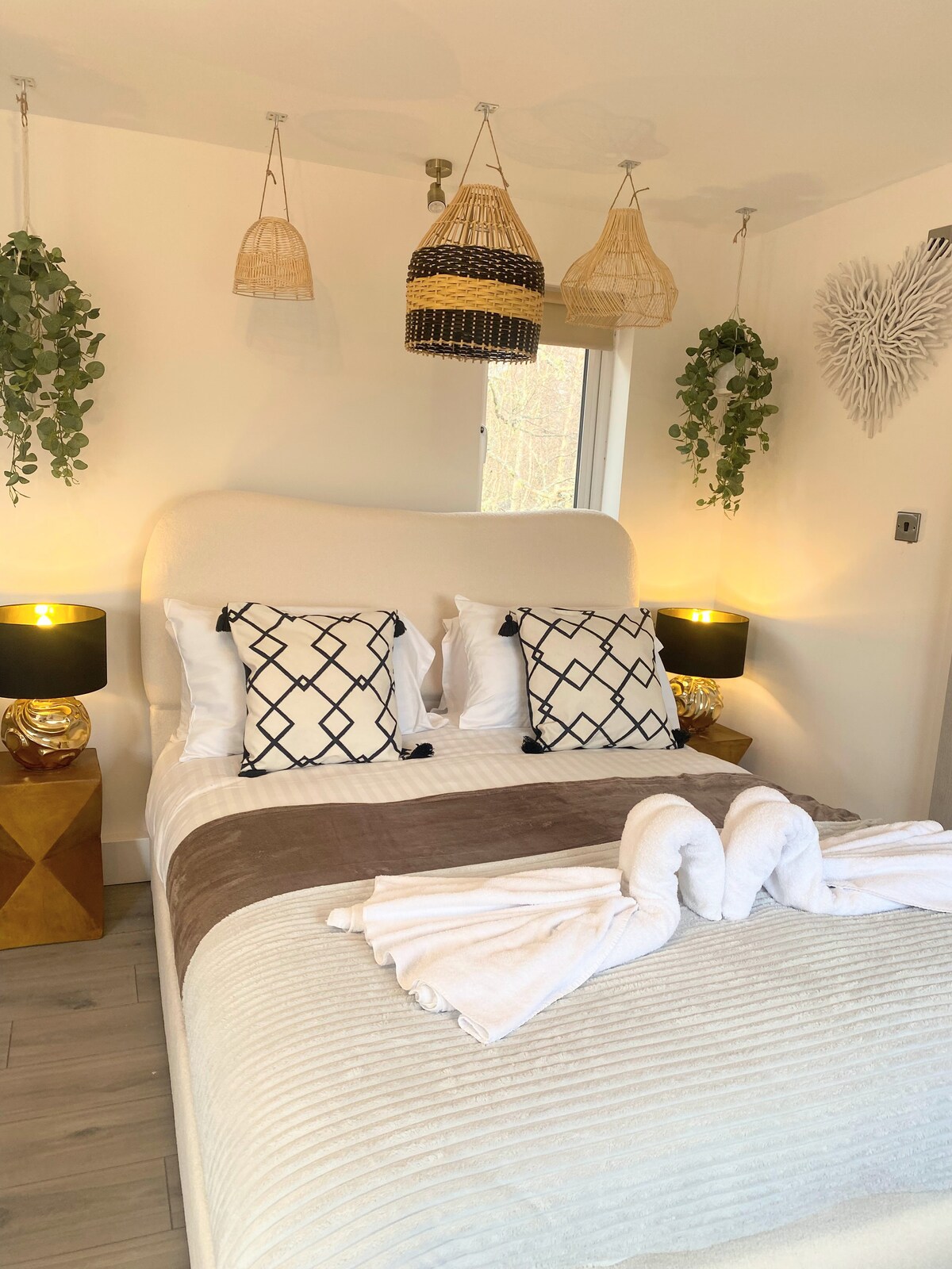 Peaceful, quiet pet friendly log cabin with enclosed garden. Perfect for couples or solo travellers seeking a peaceful retreat. Private decking area with woodland walks & wildlife on your doorstep. 10 minutes walk from a bustling town centre full of lovely shops, restaurants, bars, cafe's. popular outdoor activities include. . Walking & hiking, Bungee jumping & watersports Enclosed garden with firepit & BBQ. Well equipped open plan Kitchen/living room. 50" Smart TV & Comfortable double bed
