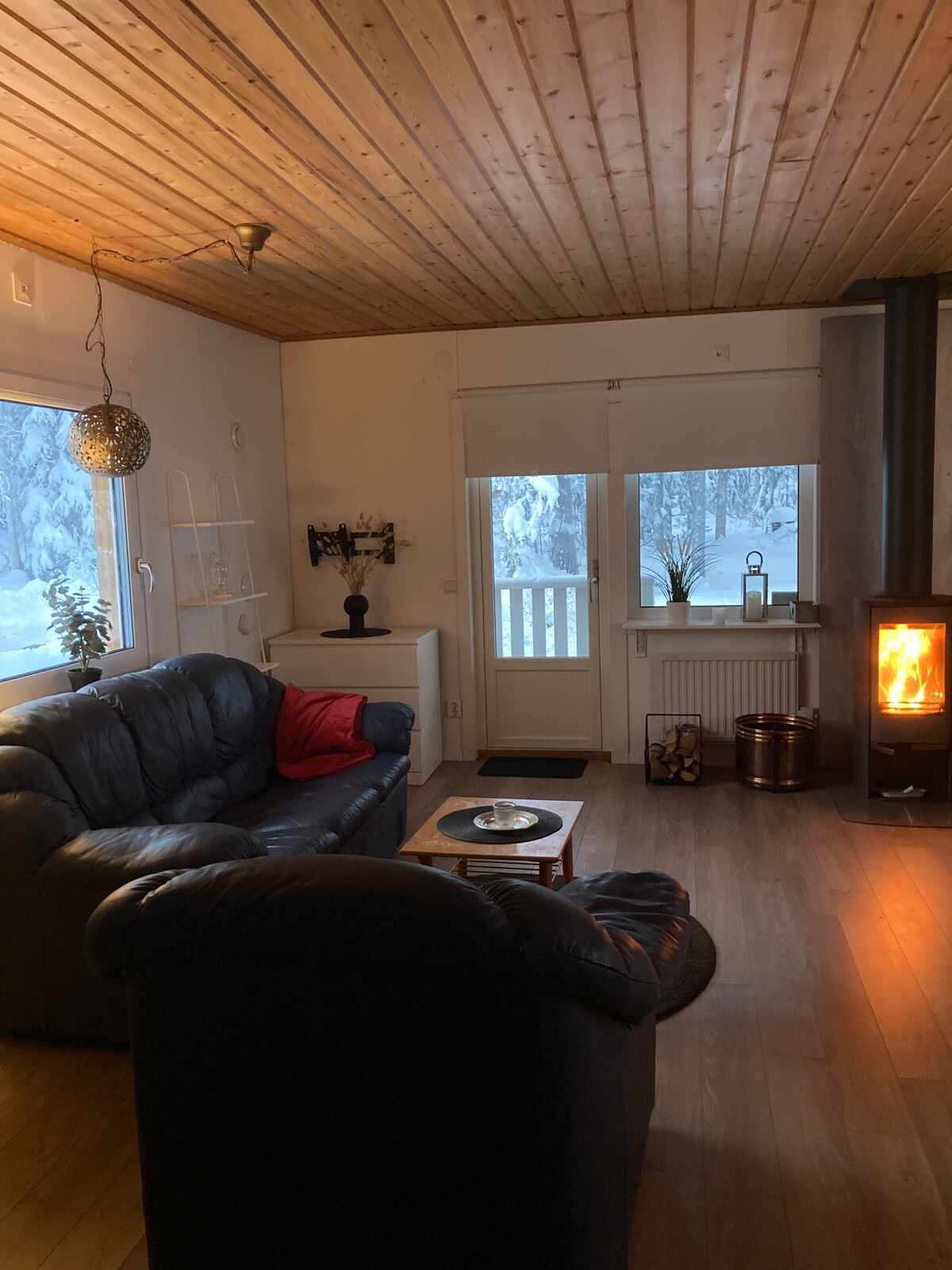The house is near a lake, terrace facing south, quiet and beautiful area for rest and recreation.Aurora-Nothern light experienced, Headlights illuminate ski trails, winter fishing, The house is large inside, Large fireplace in the living room, wood- fired sauna,If you’re looking for a nice relaxing getaway, comfortable home with wood-burning fireplace & sauna, beautiful lake views.. Wifi can be arranged,