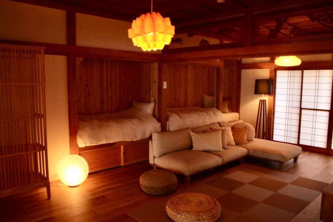L'amfitrió va renovar amb cura aquesta casa de 130 anys i la va convertir en un allotjament sencer de lloguer.Al llarg dels anys, les bigues, les columnes, els dormitoris amb tatami i les llarres de llenya han donat a la fonda una atmosfera tranquil·la i acollidora.Les finestres ofereixen vistes dels Alps Centrals i de totes les estacions de les muntanyes i, a la nit, d'un cel ple d'estrelles.Hi ha un bany Goemon a l'aire lliure on pots bullir aigua amb llenya, i també pots provar-ho si vols.La cuina està equipada amb estris de cuina i condiments, i pots gaudir dels àpats a la llar de foc.Al camp hi creixen verdures de temporada i arròs, i també pots tocar ingredients frescos durant la collita.És un lloc on els adults poden allotjar-se i deixar enrere la vida quotidiana i sentir-se còmodes encara que no facin res.