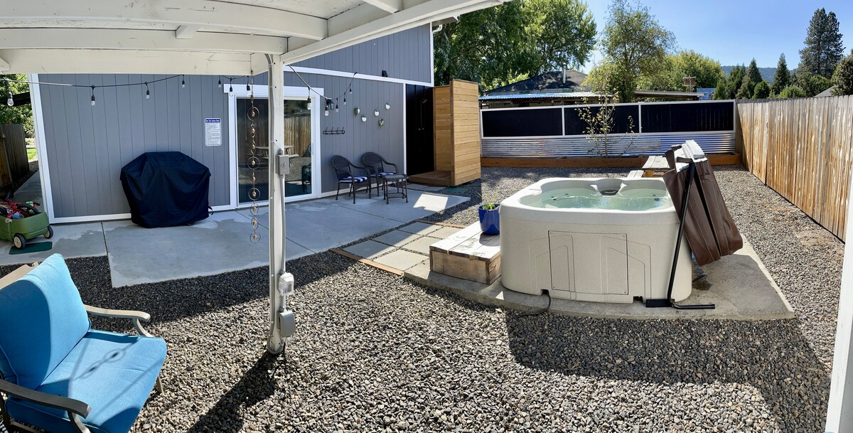 Lluminosa, brillant i simplement magnífica, aquest encantador estudi es troba a només deu minuts a peu del centre del Festival i és el lloc perfecte per gaudir del sud d'Oregon. Amagat en un barri tranquil al districte històric del ferrocarril. L'espai inclou un luxós llit king. bany amb dutxa i banyera, llar de foc, televisor intel·ligent de pantalla plana, rentadora/assecadora i cuina petita. Una gran plaça d'aparcament privada al costat de la porta i el pati cobert inclou una zona de menjador i una barbacoa. Inspiració de disseny.