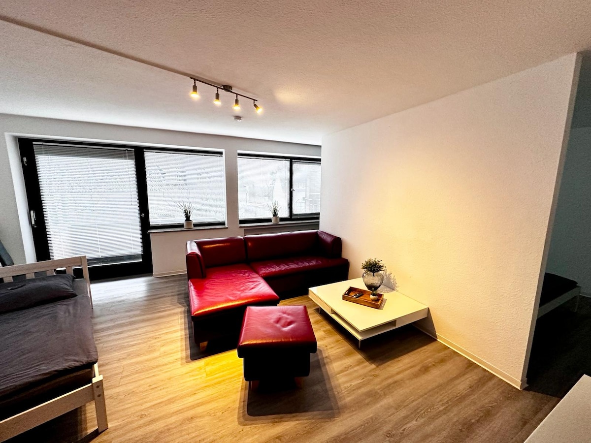 Pis sota teulada de 3 habitacions recentment renovat i elegantment moblat, situat al centre, a prop de l'EoC a Kleve. L'apartament ofereix un acollidor llit de molla, una habitació separada amb dos llits individuals, televisor intel·ligent i una rentadora 2 en 1 amb assecadora. Els espais lluminosos, el disseny modern i l'equipament i els serveis d'alta qualitat garanteixen un alt nivell de comoditat. Situat en una zona tranquil·la, amb bona connexió d'autobús; l'estació de tren està a uns 2 km. Ideal per a vacances o viatges de negocis.